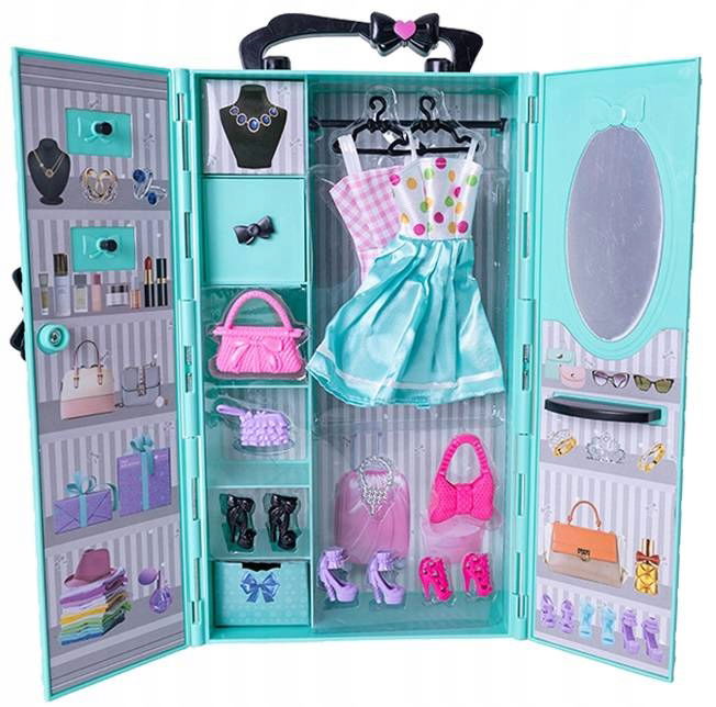 Ubrania oraz dodatki znajdujące się w garderobie będą pasowały na lalki o wielkości 29 cm (wysokość tradycyjnej lalki Barbie).