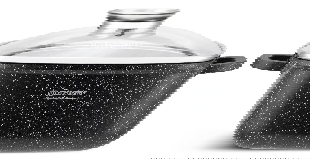 Marmurowa powłoka charakteryzuje się bardzo wysoką odpornością na ścieranie i przywieranie. Odporna na wysokie temperatury, nie wchodzi w reakcje z żywnością.
