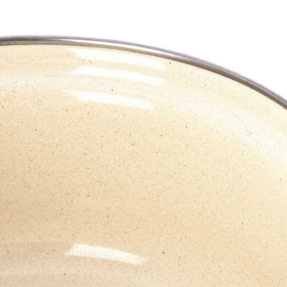 Wykonany ze stali emaliowanej - Wykonany z najwyższej jakości stali emaliowanej. Zewnętrzna część oraz uchwyty są w kolorze brązowym, a wnętrze garnka w kolorze beżowym. Rant garnka został wykonany ze stali nierdzewnej w srebrnym kolorze. Emalia, którą pokryto naczynie jest materiałem przyjaznym dla zdrowia, a nawet bezpiecznym dla alergików.