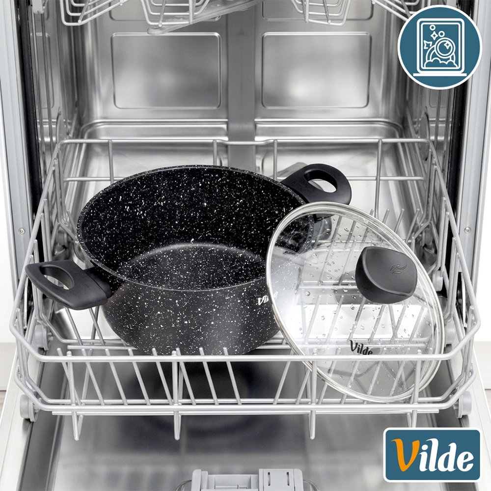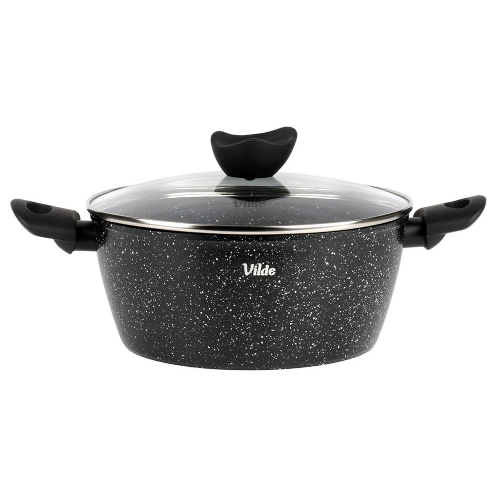GRANITOWA POWŁOKA I ŻAROODPORNA POKRYWKA - Garnek wykonany jest z odlewu aluminium z nieprzywierającą powłoką granitową, co umożliwi przygotowanie potraw na minimalnej ilości tłuszczu. Pokrywka jest żaroodporna, a uchwyty w pokrywce i garnku wykonane są z tworzywa w czarnym kolorze i są typu soft touch.
