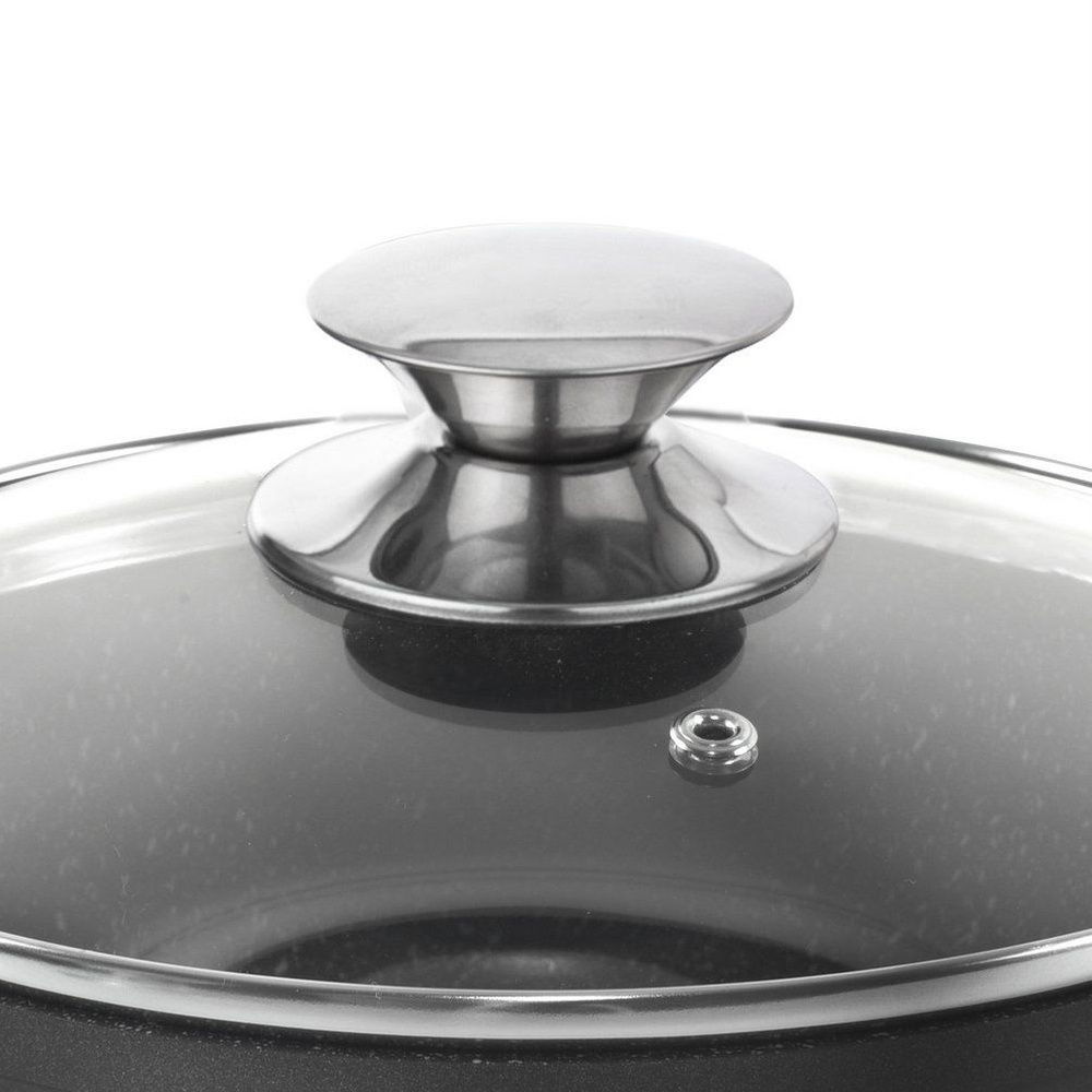 Nieprzywierający garnek wyposażony w pokrywkę z odpowietrznikiem pary. Garnek sprawdzi się do gotowania oraz duszenia, przygotujemy w nim różnego rodzaju dania, zupy czy sosy. Nieprzywierająca powłoka pozwoli na wygodne przygotowanie dań, przy użyciu małej ilości tłuszczu. Efektownie prezentuje się w kuchni oraz podczas serwowania dań bezpośrednio na stole.