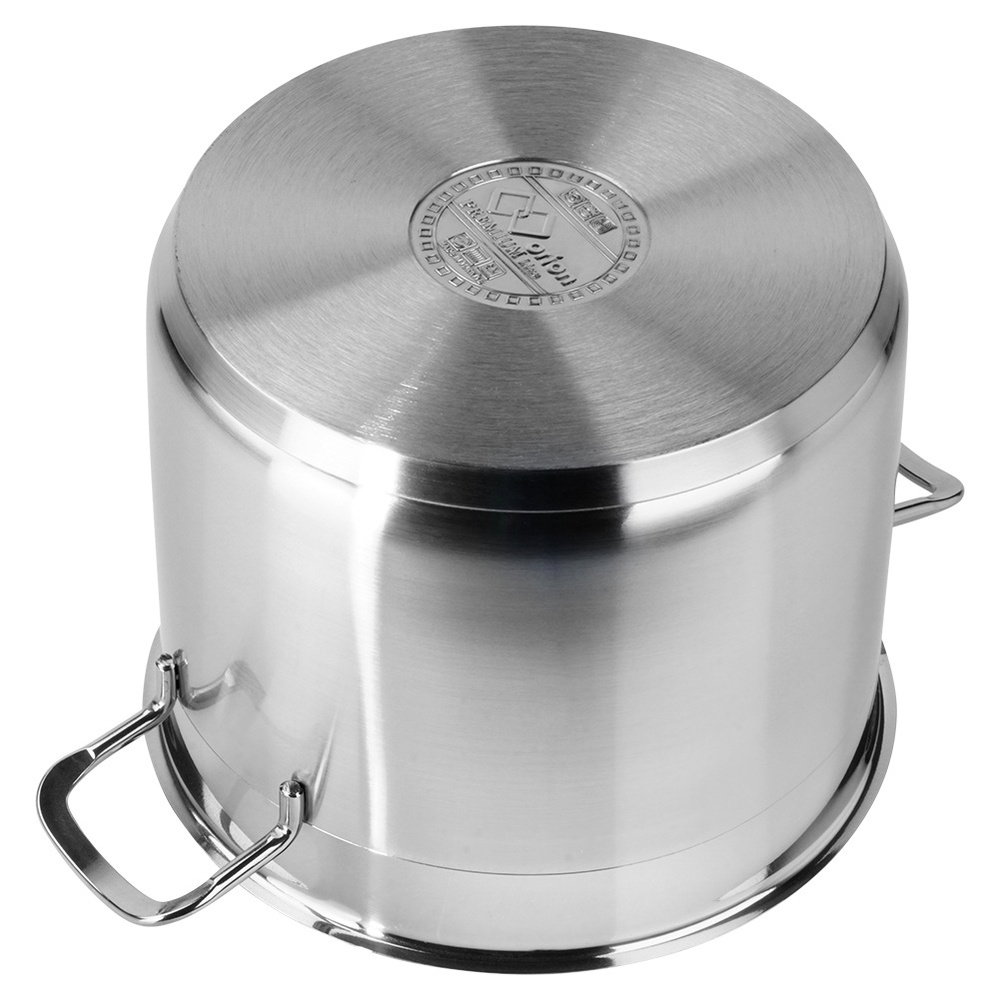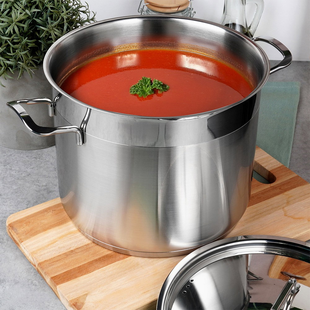 Garnek klasy premium do gotowania i duszenia w zestawie z praktyczną pokrywką. Niezwykle solidnie wykonany z najwyższej jakości materiałów. Łatwy w czyszczeniu. Dobrze kumuluje i rozprowadza ciepło. Przydatny w każdym domu. Nadaje się do zastosowania w profesjonalnej kuchni.