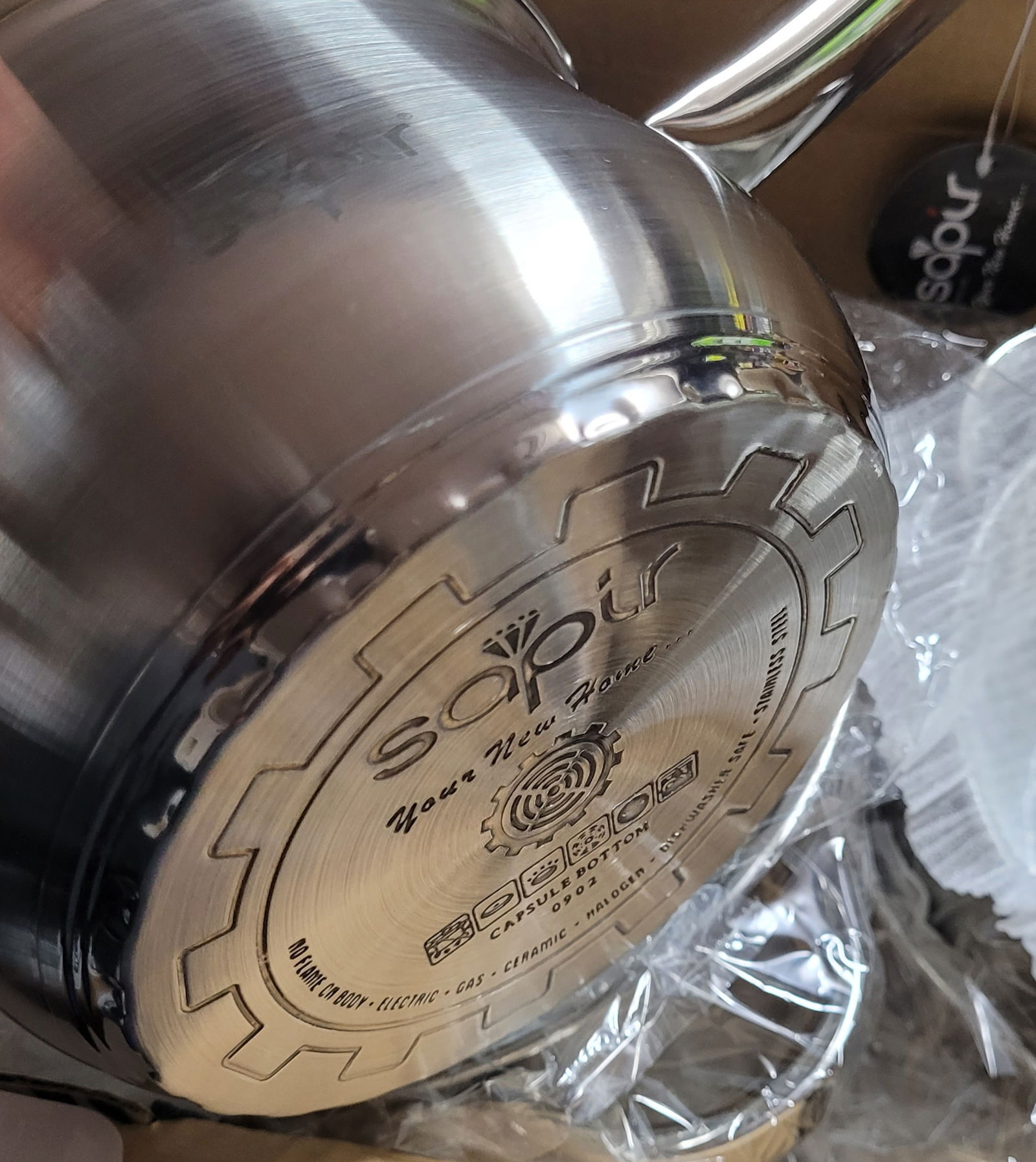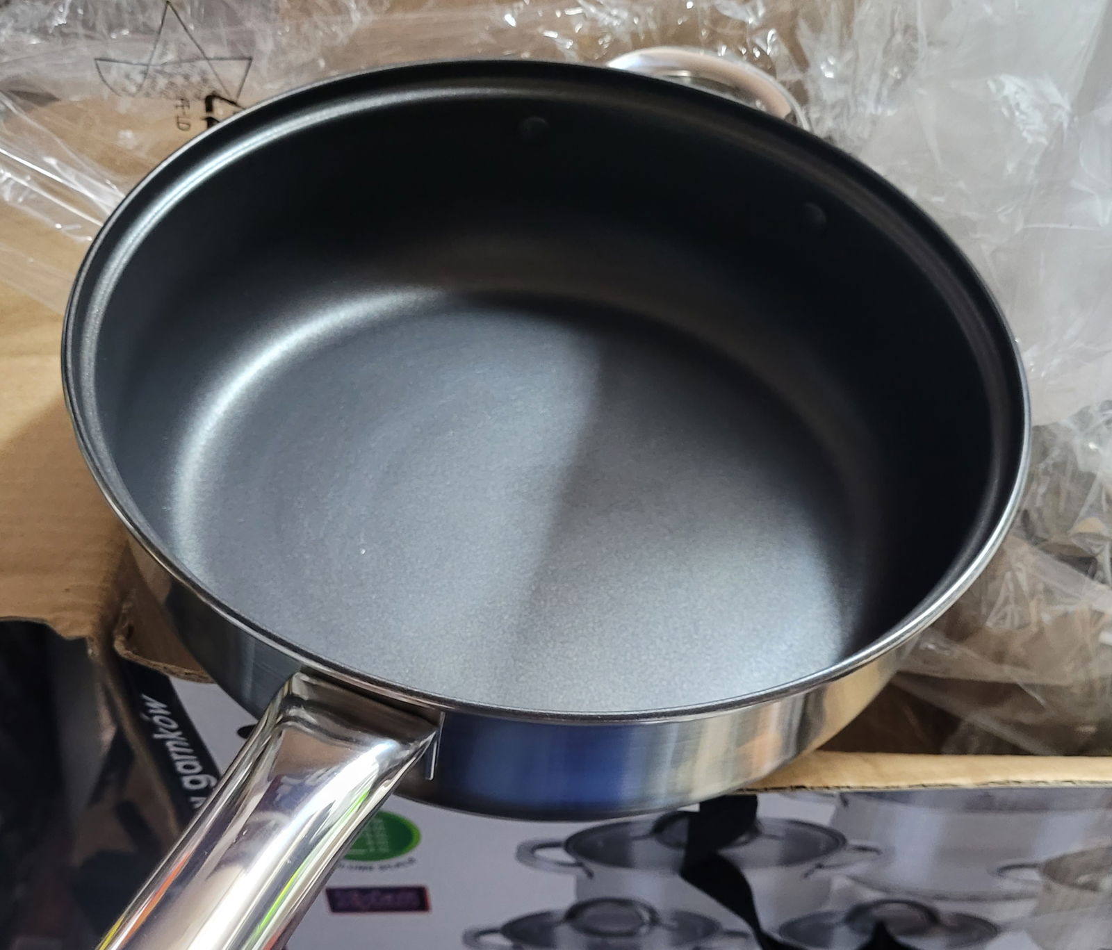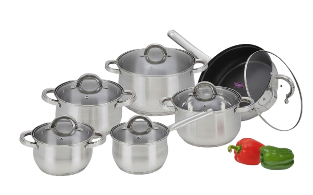 Zestaw matowych garnków 12 el. Sapir. Wysokiej jakości garnki wykonane z trwałych materiałów, z wygodnymi uchwytami. Doskonale sprawdzą się w codziennym użytkowaniu w kuchni. Garnek 16 cm 1,5L Rondel 16 cm 1,5L Garnek 18 cm 2,4L Garnek 20 cm 3,6L Garnek 24 cm 5,5L Patelnia teflonowa 24 cm 6 szklanych pokrywek ( Na pudełku są większe pojemności,ale podałem użytkowe)