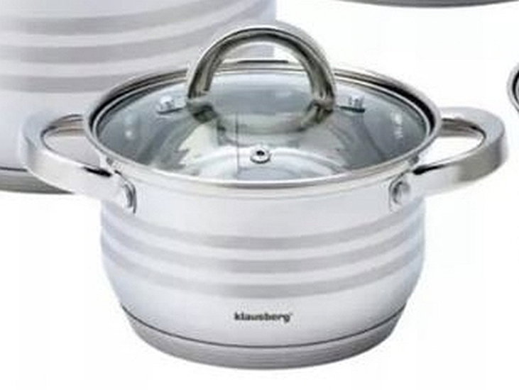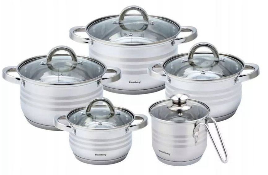 Zestaw zawiera: - garnek z pokrywką 2,1 L Ø 16 cm x 10,5 cm - garnek z pokrywką 2,9 L Ø 18 cm x 11,5 cm - garnek z pokrywką 3,9 L Ø 20 cm x 12,5 cm - garnek z pokrywką 6,6 L Ø 24 cm x 14,5 cm - Garnek do mleka z pokrywą 1,7 L Ø 14 cm x 11,5 cm