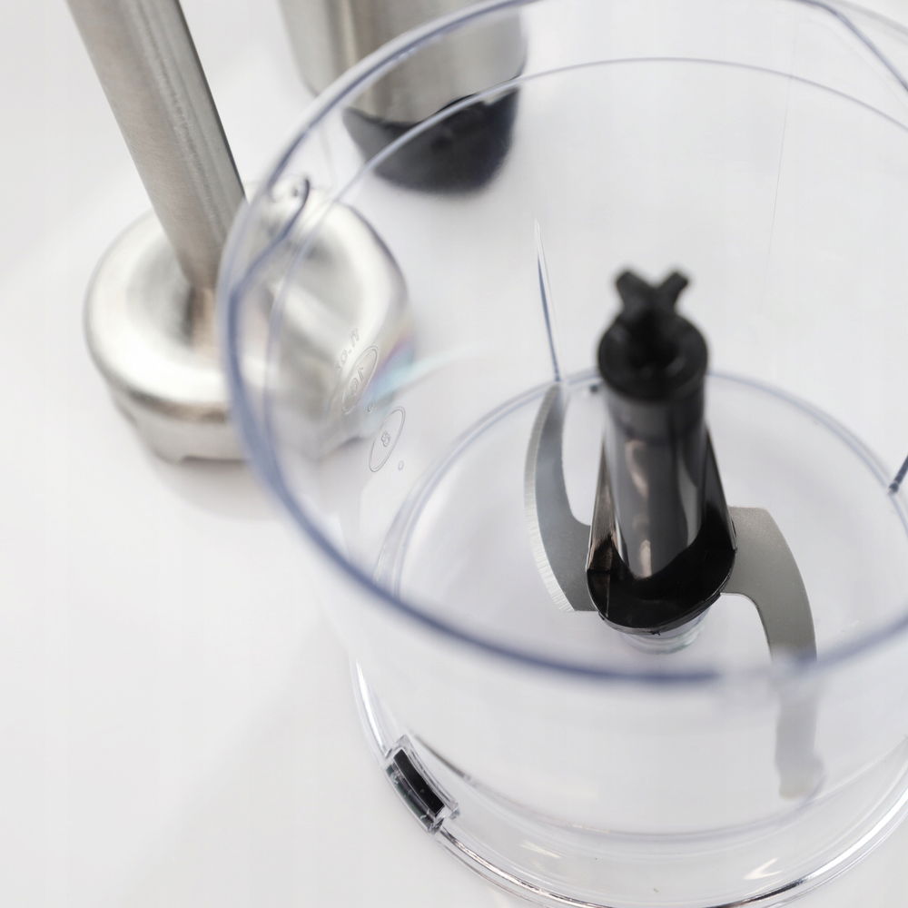Wyposażony w mocny silnik o mocy 1000W, blender oferuje dwie prędkości, umożliwiając precyzyjne dostosowanie do różnych zadań kuchennych. Zawiera trzepaczkę, kubek o pojemności 0,6L i rozdrabniacz 0,5L, co sprawia, że jest idealny do przygotowywania szerokiej gamy potraw, od kremowych zup po puszyste desery. Jego łatwość użycia i szybkość czyszczenia sprawiają, że jest niezastąpionym pomocnikiem w każdej kuchni.