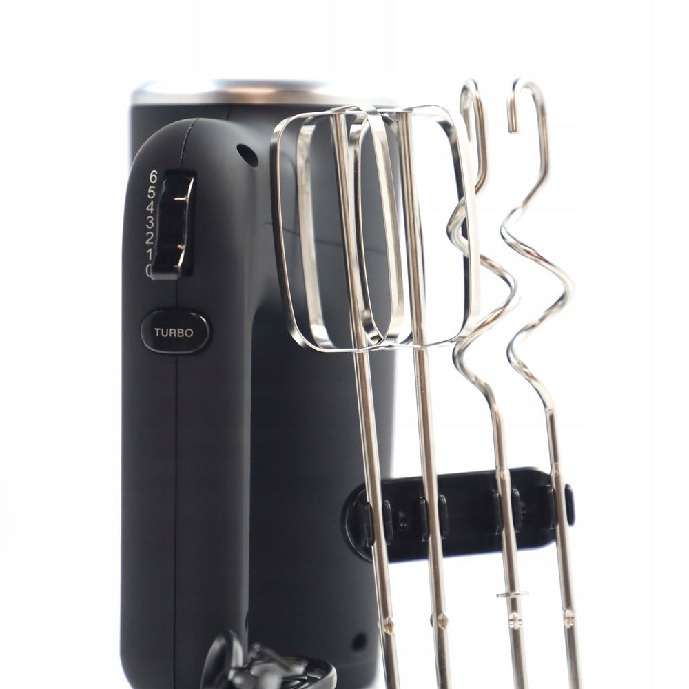 Ten mikser ręczny jest wyposażony w potężny silnik o mocy 500W, oferując 6 różnych ustawień prędkości oraz dodatkową funkcję Turbo dla jeszcze większej szybkości działania. Dzięki tym funkcjom, szybko i sprawnie przygotujesz różnorodne składniki, od delikatnych musów po ciężkie ciasta. To idealne narzędzie, które ułatwia i przyspiesza pracę w kuchni.