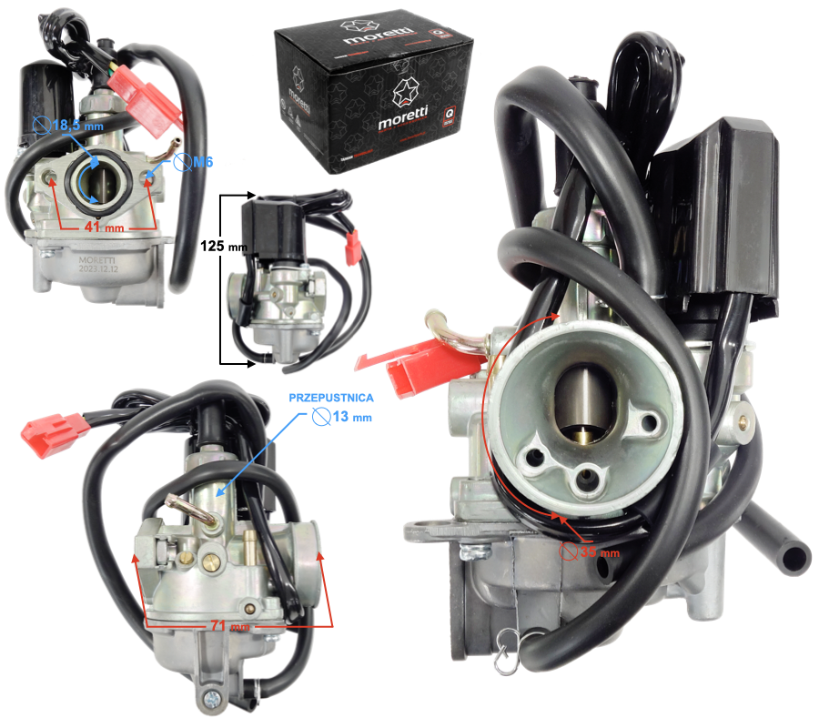 Zasady bezpieczeńśtwa i użytkowania:Gaźnik Moretti Honda Dio, 50cc 2T, p.13mm, ssanie elektryczne Skuter 2T kod ean 5905220824113