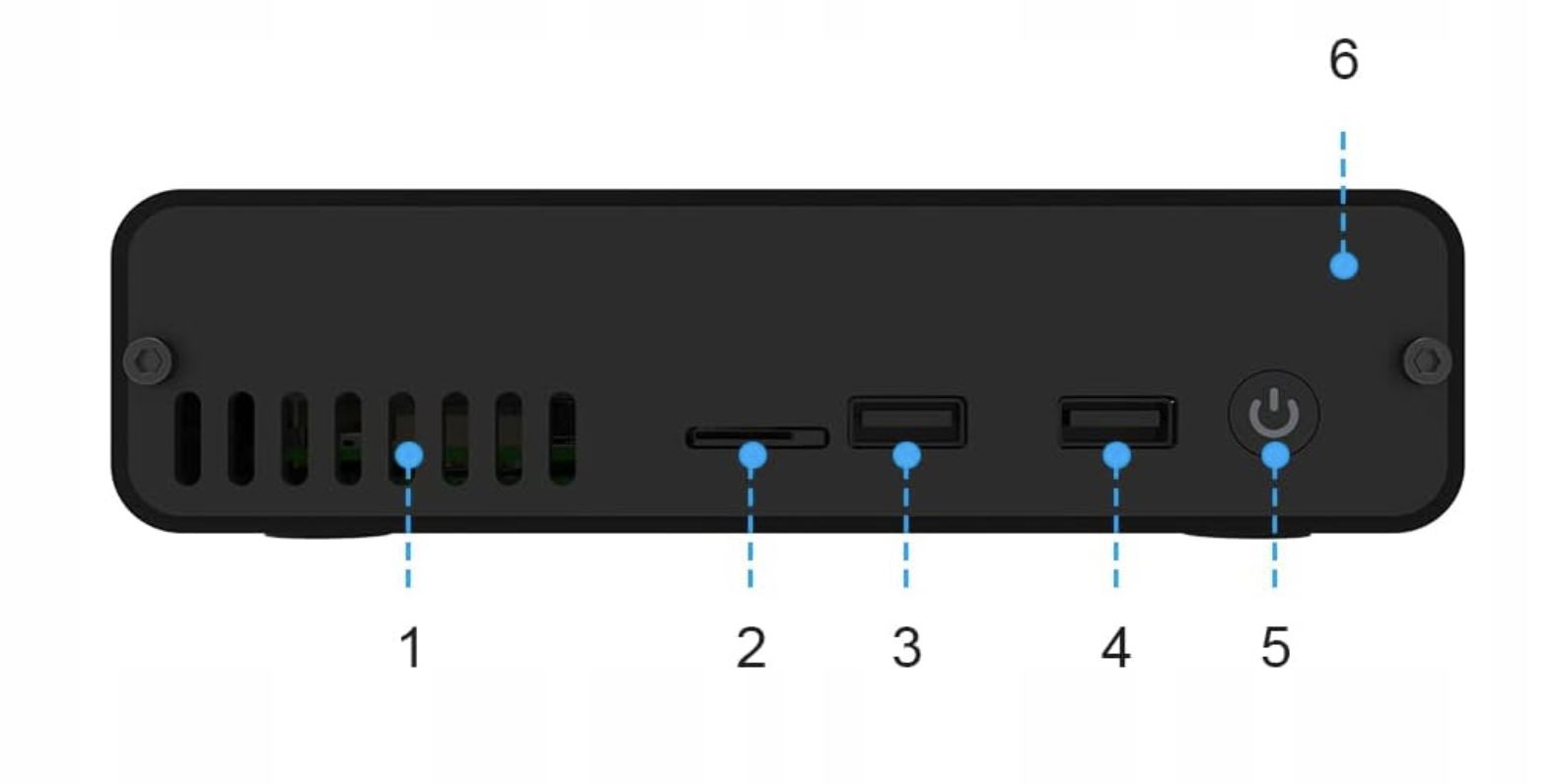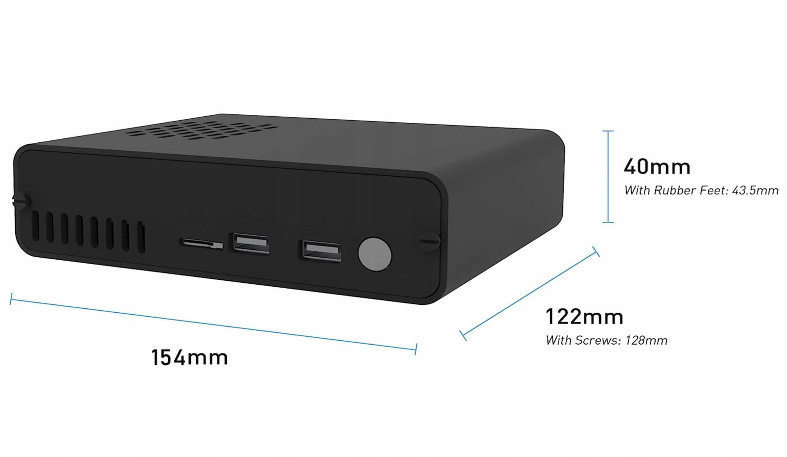 Konstrukcja ze wszystkimi portami z tyłu. Port zasilania typu C rozszerza dwa przednie porty USB dla urządzeń USB, takich jak: