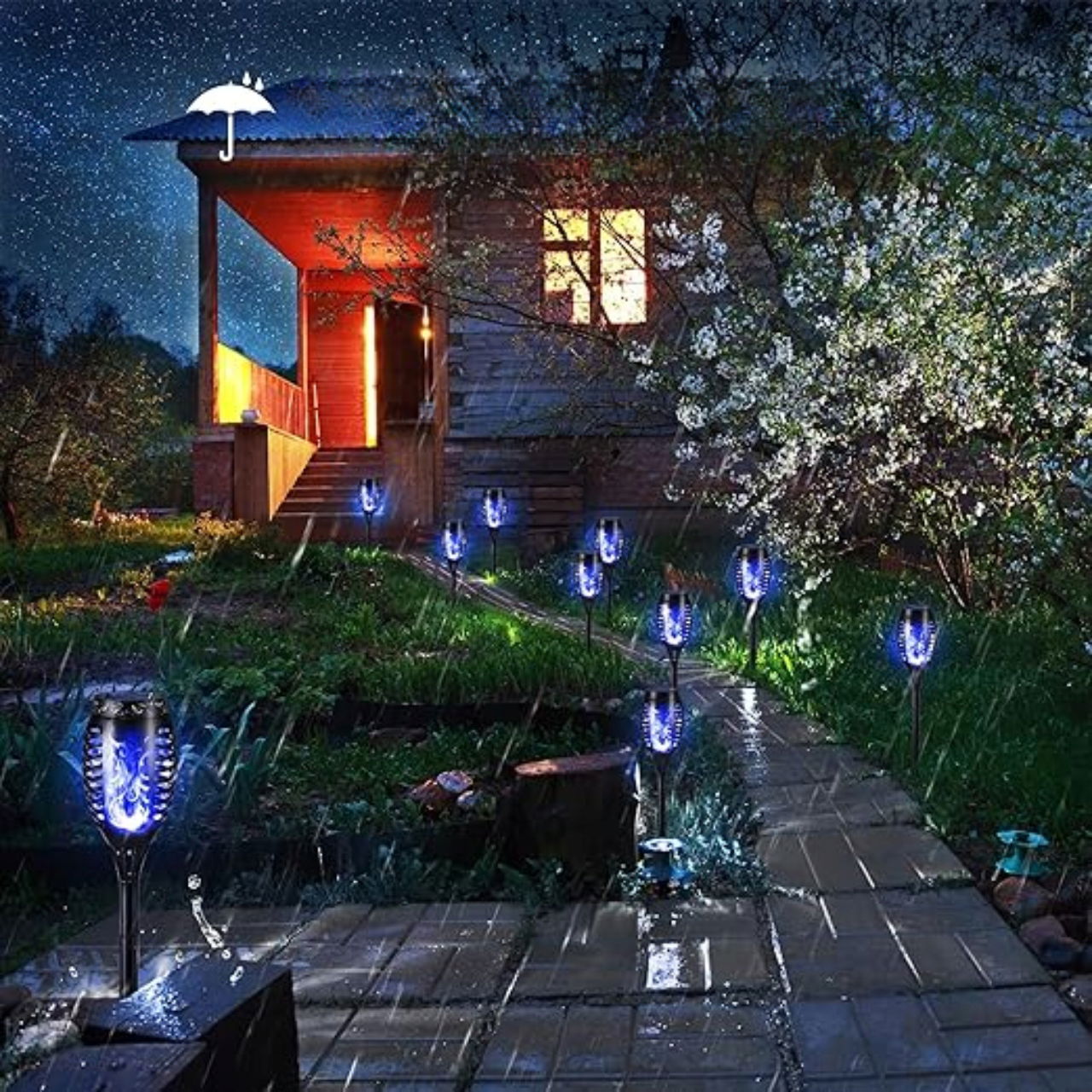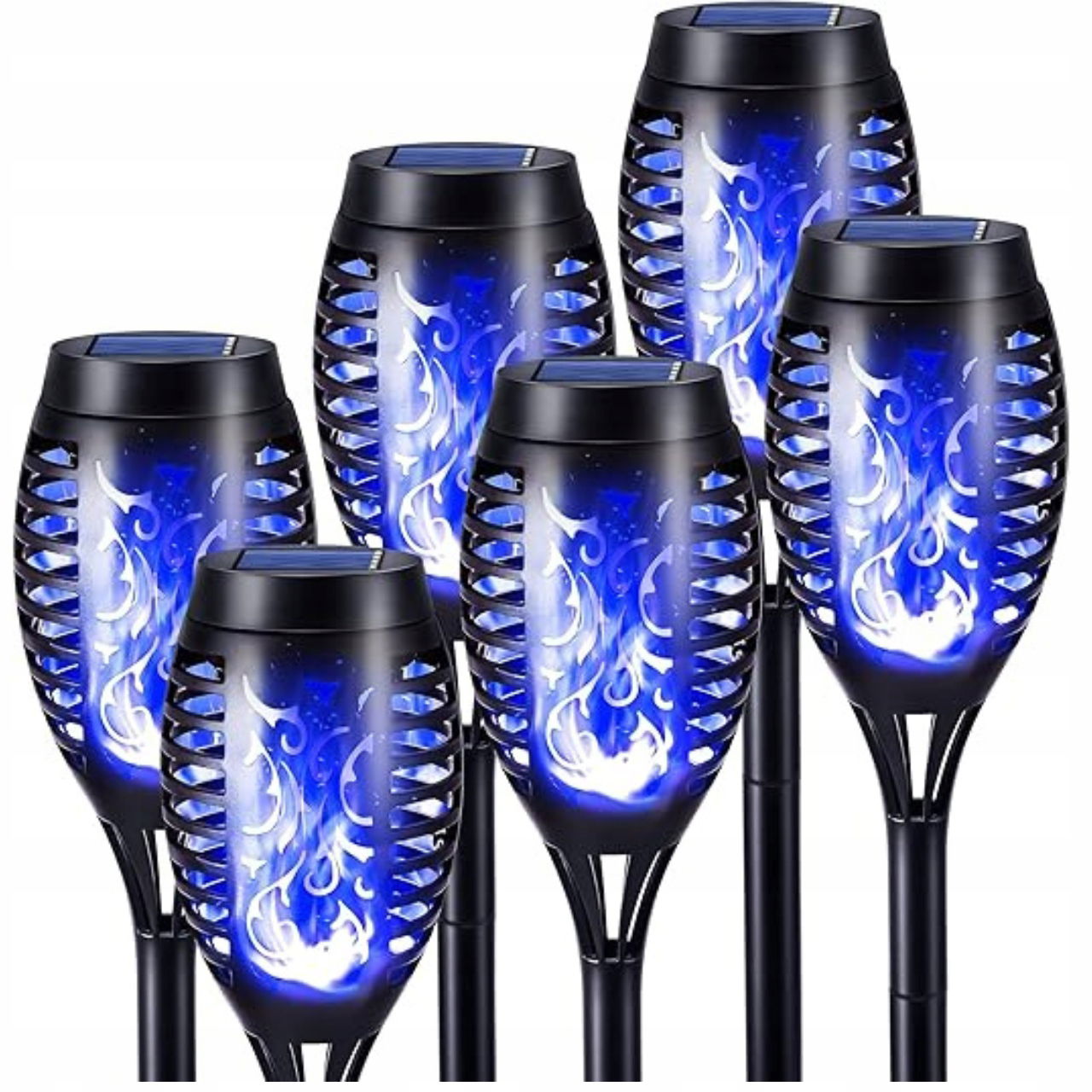 Geemoo Lampy Solarne do Ogrodu, 6 szt Niebieski Efekt Płomienia Wodoodporne