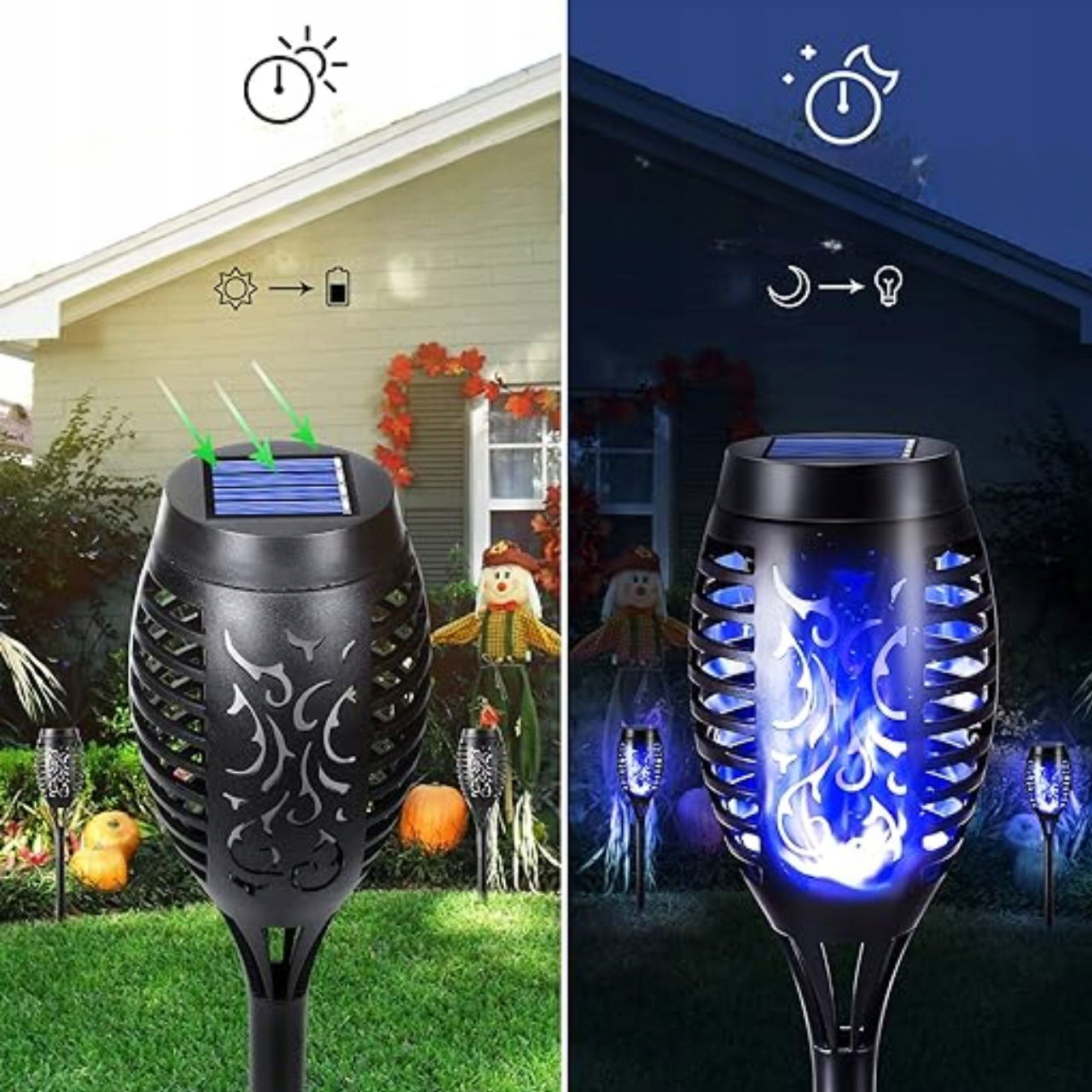 Dodaj wyjątkowego klimatu swojemu ogrodowi dzięki lampom solarnym Geemoo z realistycznym, niebieskim efektem płomienia! Idealne do stworzenia nastrojowego oświetlenia na podwórku, wzdłuż alejek, na wjeździe czy podczas imprez plenerowych – również w stylu Halloween!