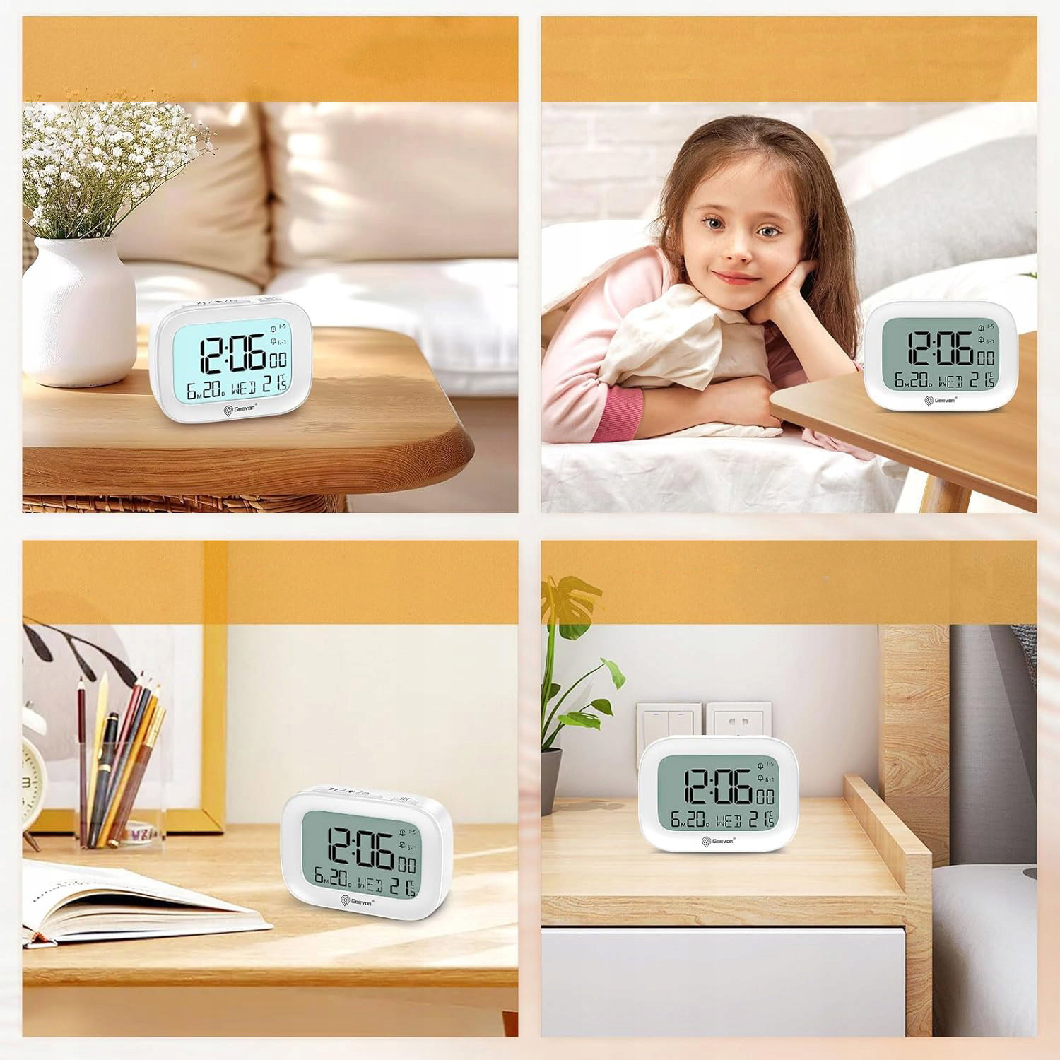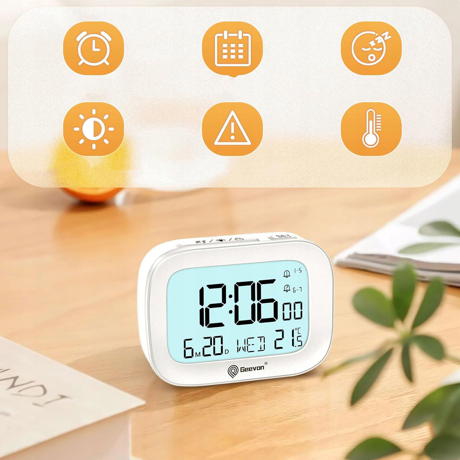 Cyfrowy budzik Geevon wyróżnia się minimalistycznym designem i niewielkimi rozmiarami, dzięki czemu doskonale sprawdzi się zarówno na stoliku nocnym, jak i w podróży. Prosta forma i czytelny wyświetlacz sprawiają, że jest wygodny w codziennym użytkowaniu.