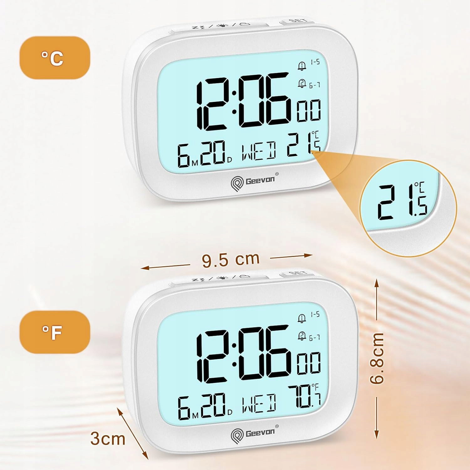 Geevon Zegar elektroniczny LCD cyfrowy alarm temperatura budzik drzemka