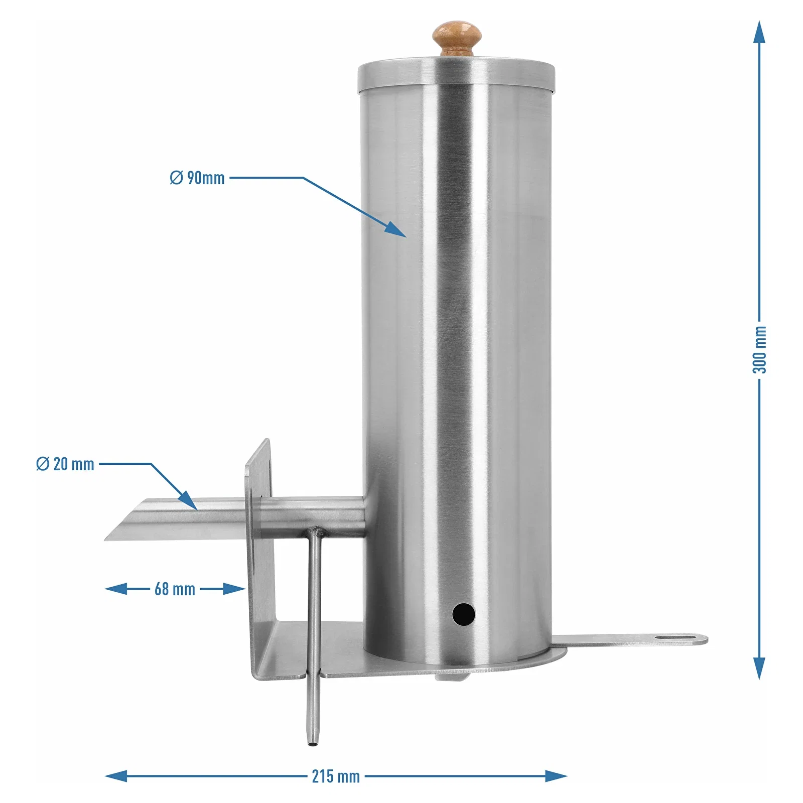 wysokość: 300 mm szerokość: 68 mm długość: 215 mm średnica rurki dymowej: 20 mm