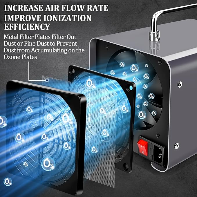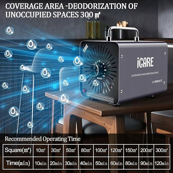 Wydajny generator ozonu o wydajności 30 000 mg/h: Ulepszony oczyszczacz powietrza ozonowego może wytwarzać 30 000 mg ozonu na godzinę, o powierzchni oczyszczania do 300 m². Natychmiast generuje ogromne ilości ozonu i szybko usuwa zapachy. Skutecznie dezodoryzuje i dezynfekuje przestrzeń, chroniąc ją przed nieprzyjemnymi zapachami, pleśnią, bakteriami, parabenami i lotnymi związkami organicznymi, takimi jak formaldehyd. Idealnie nadaje się do domów, sypialni, biur, hoteli, restauracji i samochodów, zapewniając czyste i komfortowe środowisko życia.