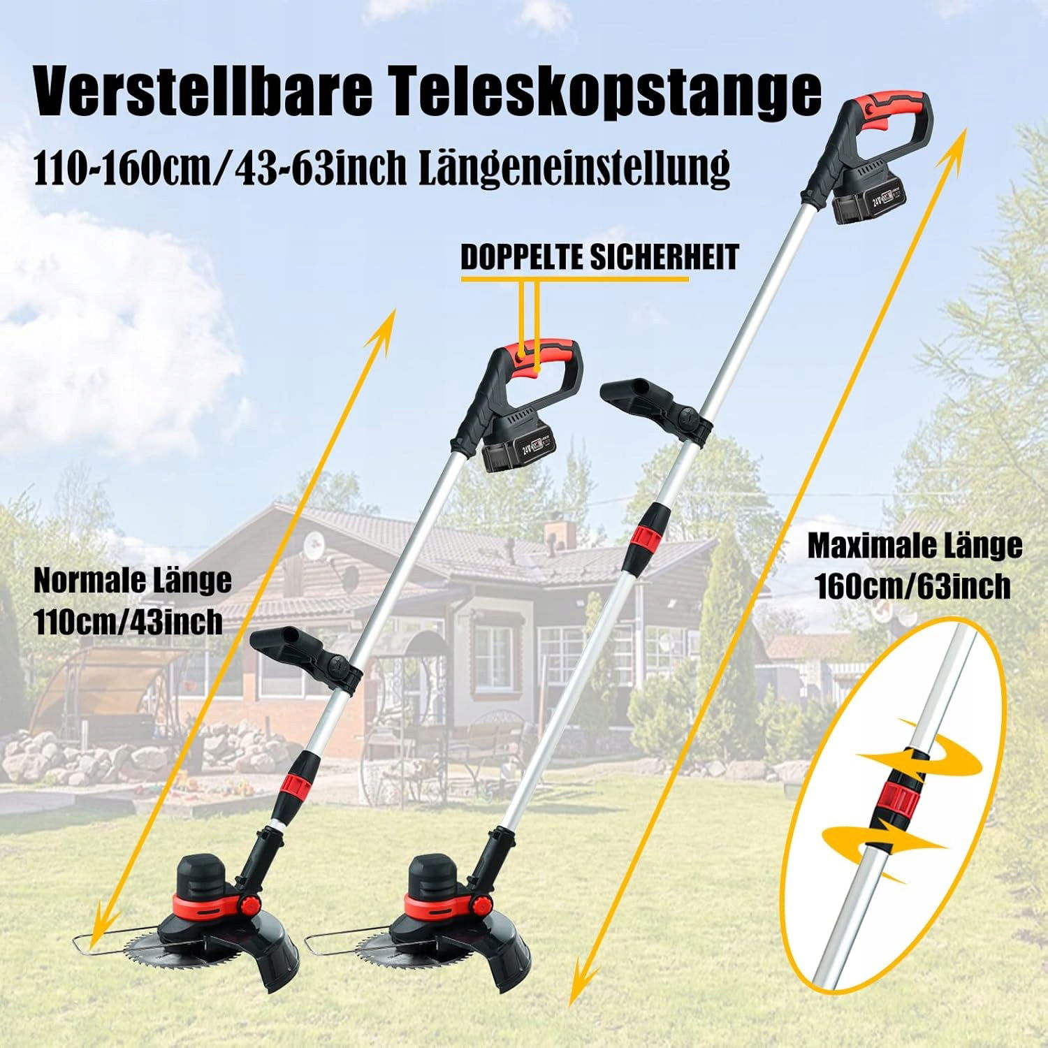 GfsGsjzc Akumulatorowa Podkaszarka Z 2 Akumulatorami O Długości 110-160cm