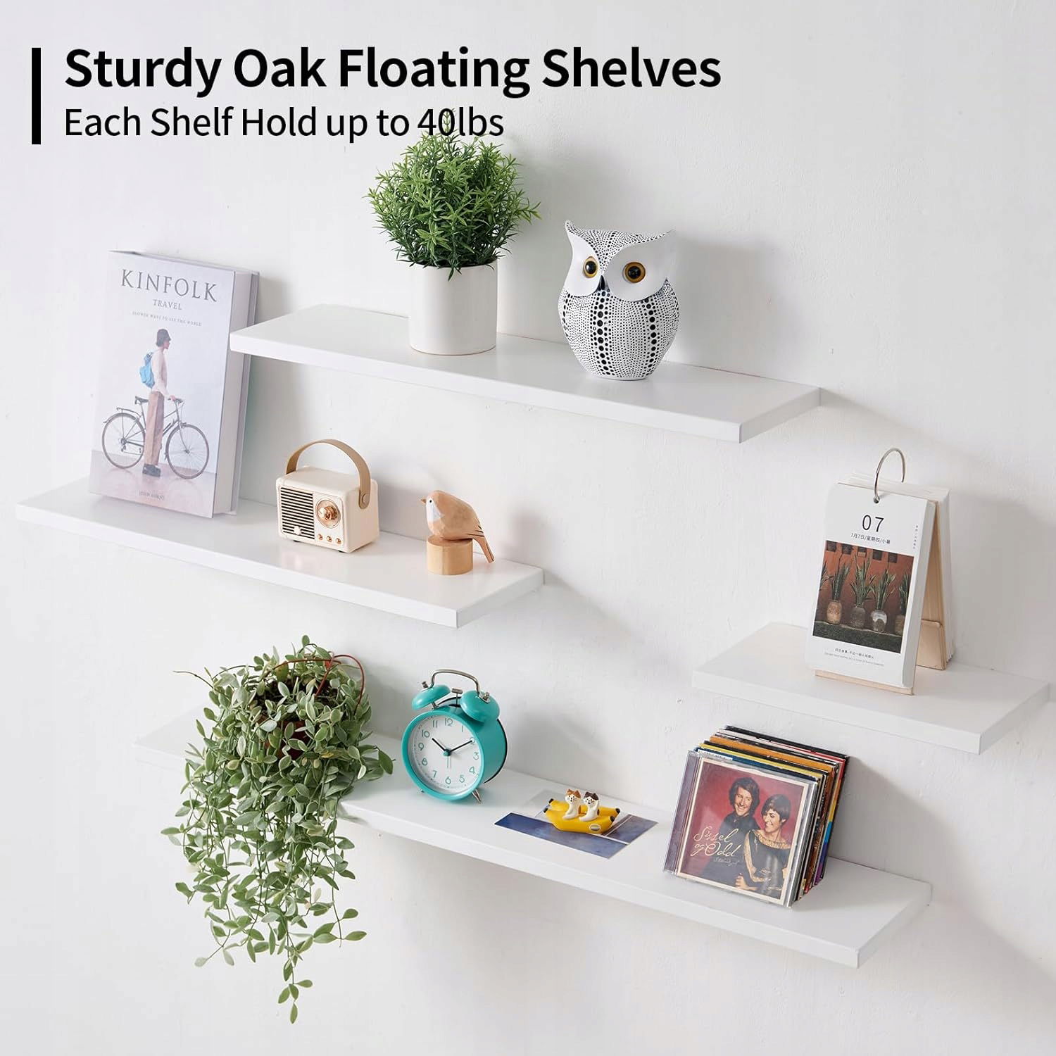 Praktyczna biała pływająca półka: półki ekspozycyjne doskonale nadają się do eksponowania książek, głośników, zdjęć, trofeów, roślin, drobiazgów, budzika lub ozdób w salonie, biurze, gabinecie, służą jako półka do przechowywania toalety w łazience, używane jako stojak na przyprawy, półka na zdjęcia, półka na rośliny i wiele więcej