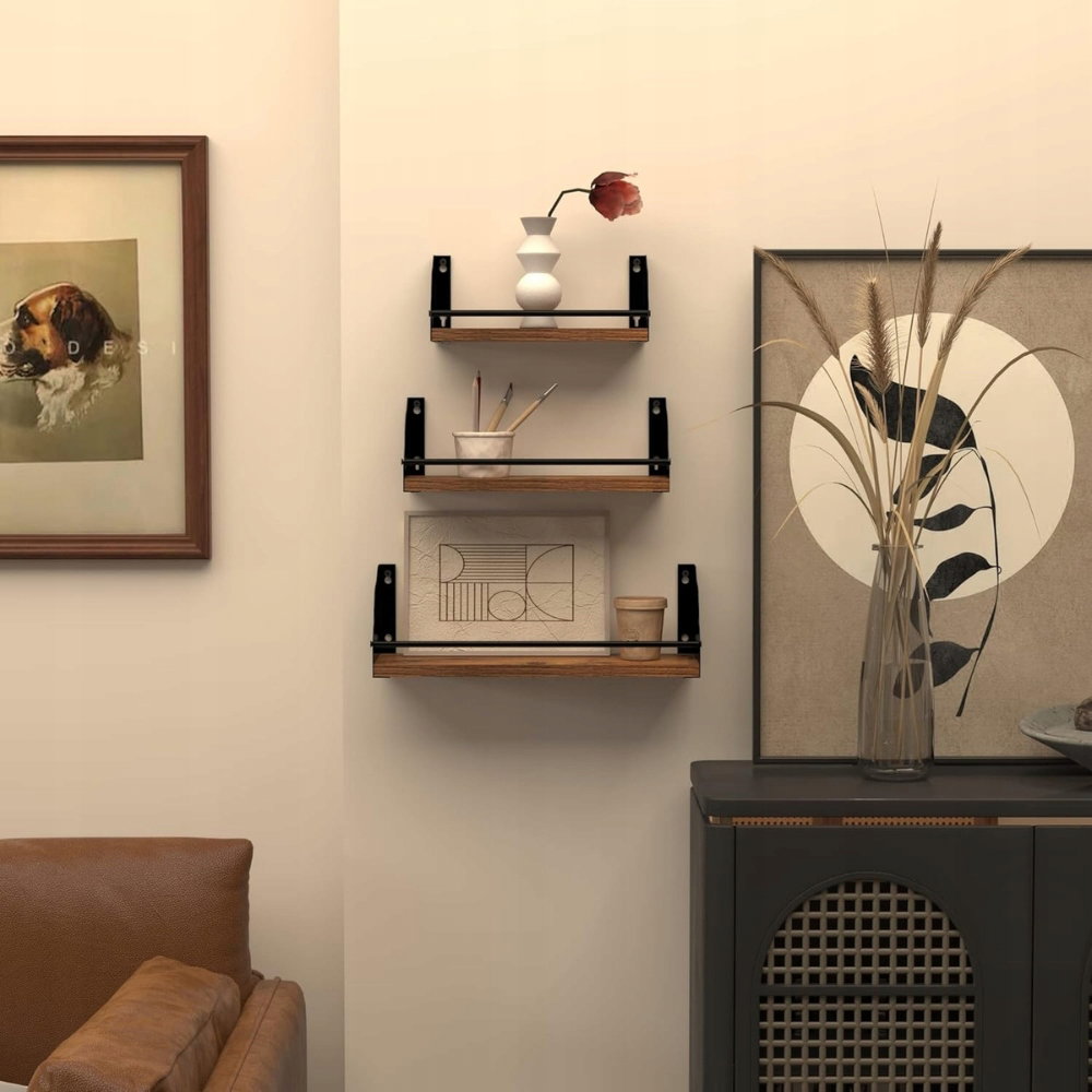 Zestaw trzech regałów w różnych rozmiarach daje elastyczność aranżacyjną – możesz zawiesić je razem lub osobno, w zależności od potrzeb. Pasują do każdego pomieszczenia – łazienki, kuchni, pokoju dziecięcego, salonu, sypialni, a nawet kawiarni czy biura.