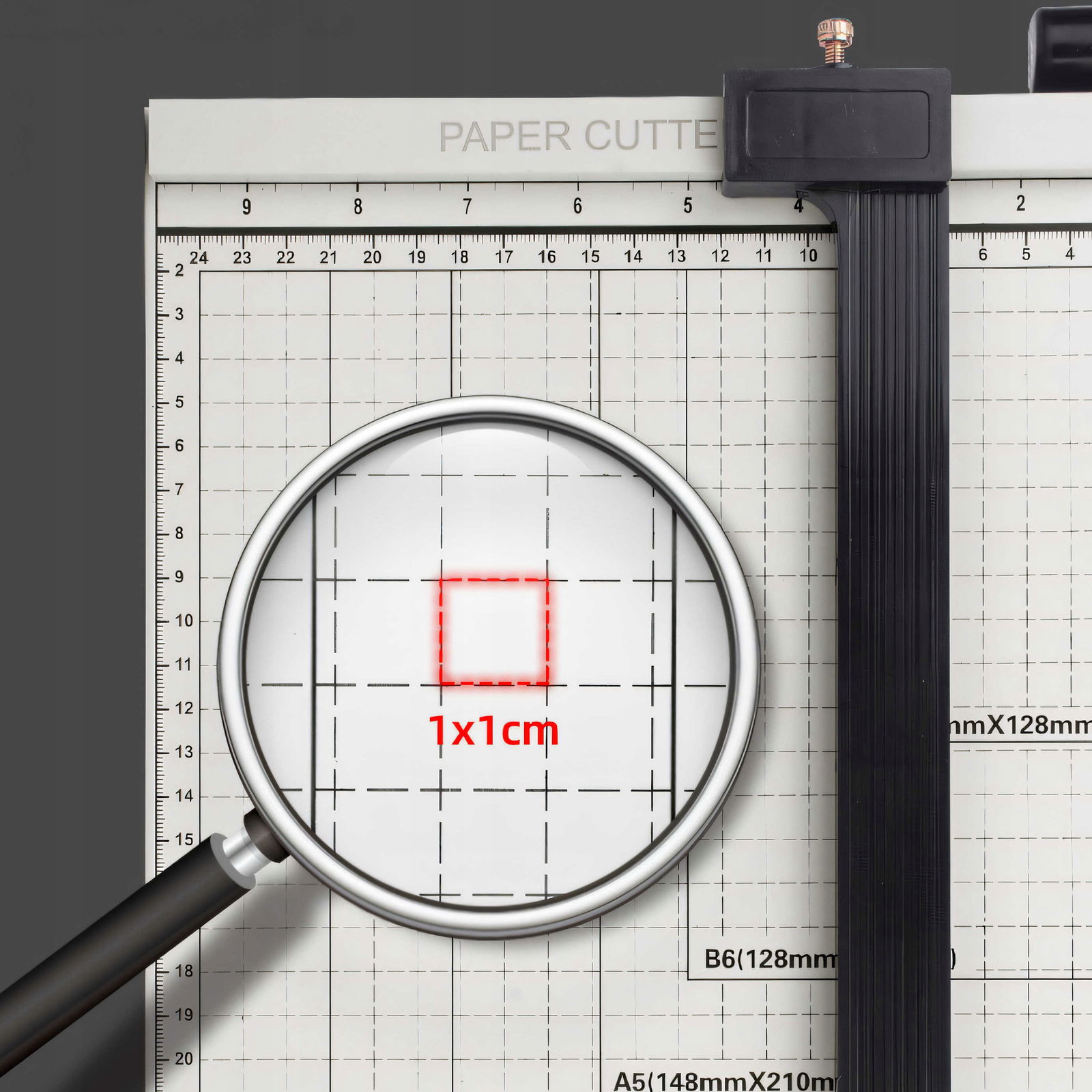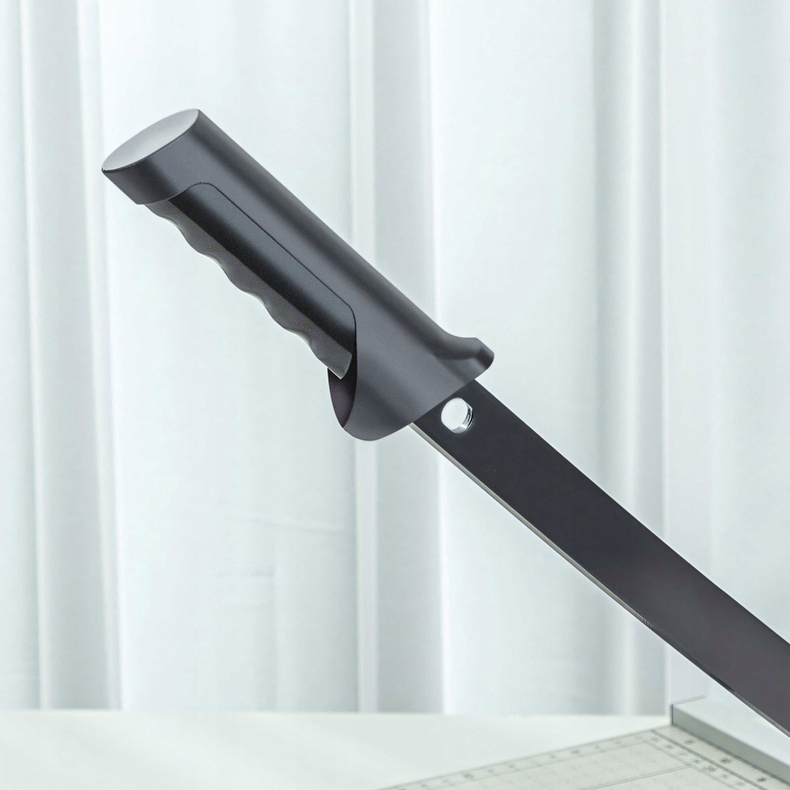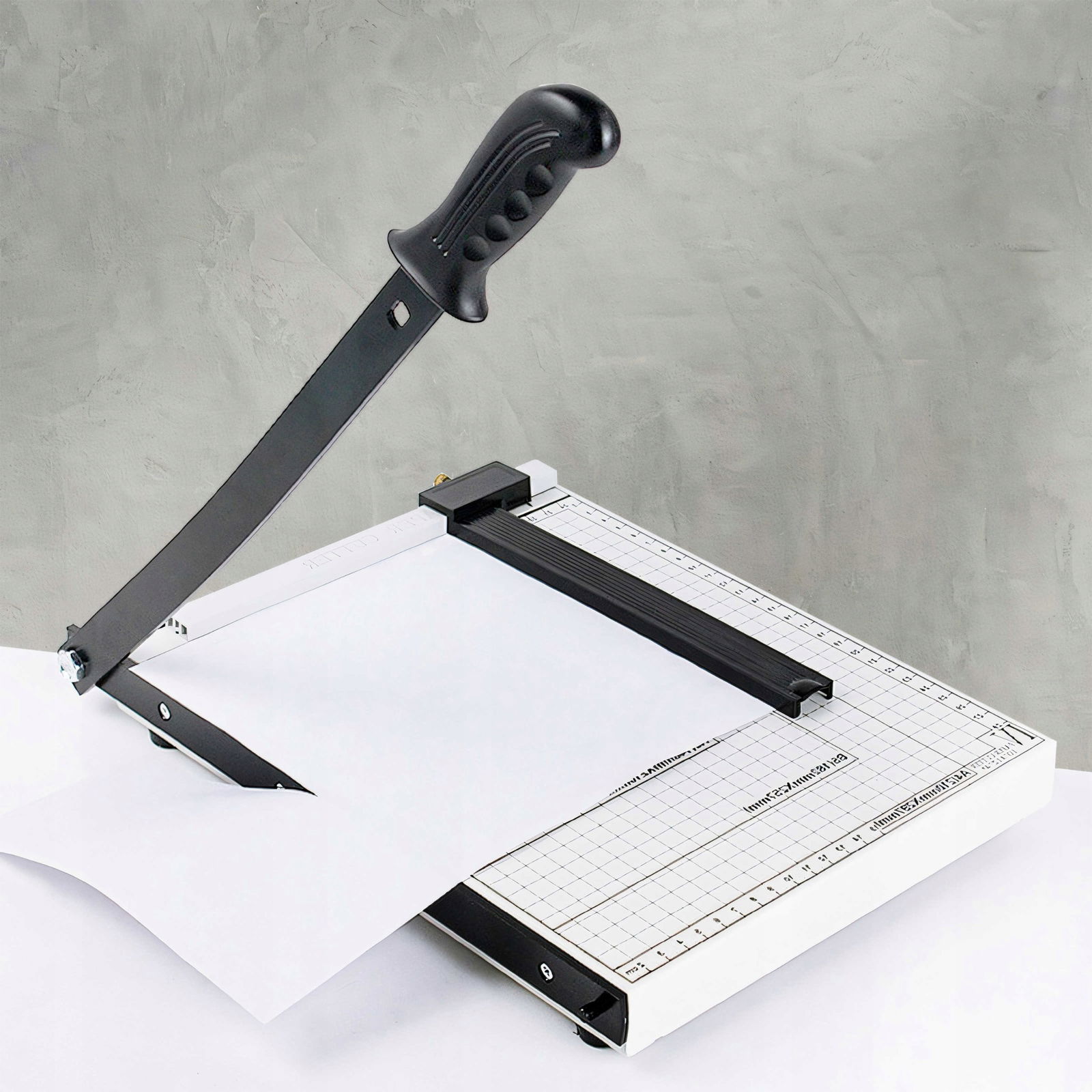 Nasza urządzenie to nie tylko gilotyna do papieru, to także komfort i wygoda w jednym. Dzięki temu uchwytowi, nawet przy długotrwałym cięciu dużej liczby arkuszy papieru, Twoje ręce pozostają w komfortowej pozycji, co zmniejsza zmęczenie i ryzyko bólu.