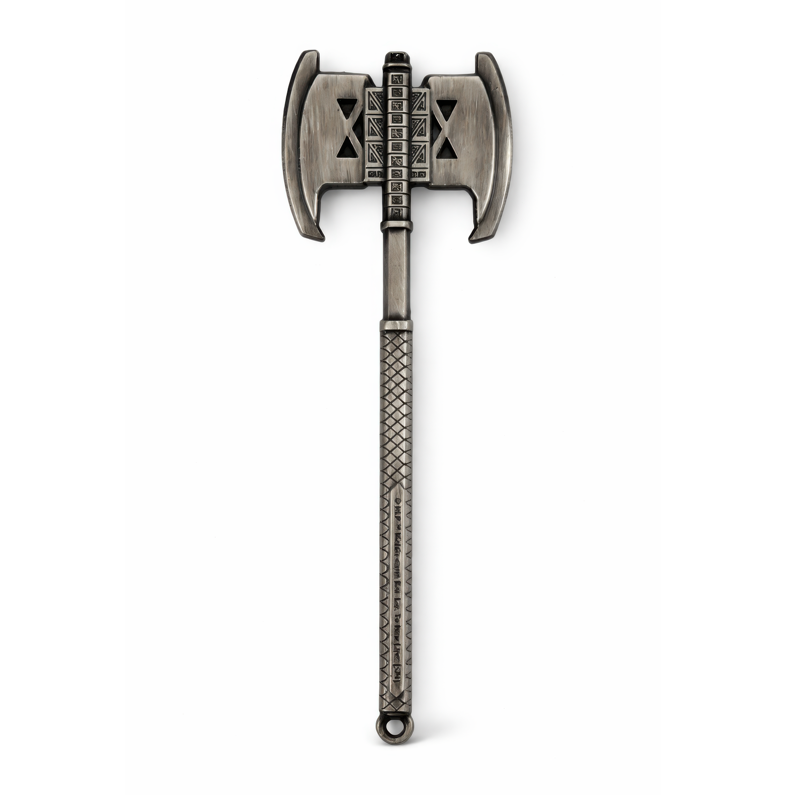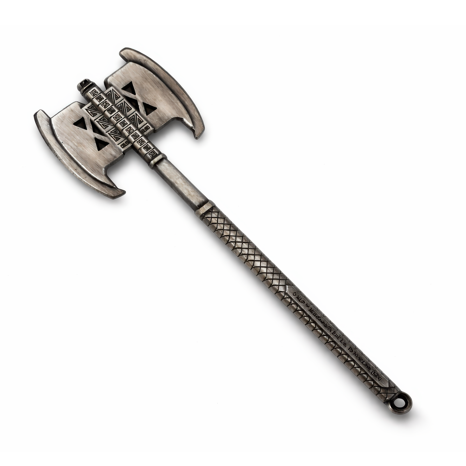 Feel the rumble of the Lonely Mountain every time you twist the haft of this Dwarven battle‑axe, the weapon Gimli would brandish on the fields of Helm’s Deep. Cast in solid metal, the 18 cm axe head bears the rugged, rune‑etched blade and a slightly curved edge that doubles as a sturdy bottle opener, while the short, knurled grip mimics the wooden haft of the classic weapon. A perfect piece for a tavern‑side toast, a giveaway for fellow fans, or a standout addition to any Middle‑earth collection.