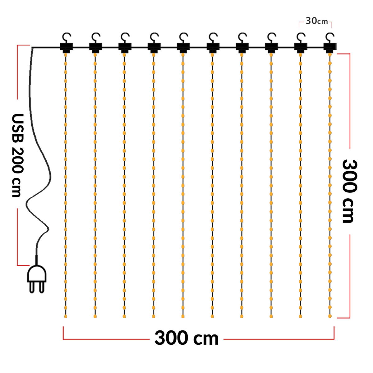 Girlanda LED Heckermann YS-0003 3x3m 300LED Warm