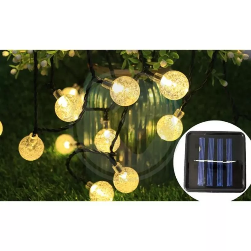 Girlanda solarna ogrodowa, balkonowa Led 20 małych kulek led i 485cm długości sznura z lampkami i 2 metra przewodu od sterownika solarnego. Kolor lampek ciepły biały (3000K). Lampy solarne są idealną ozdobą każdego tarasu, patio, balkonu i ogrodu.