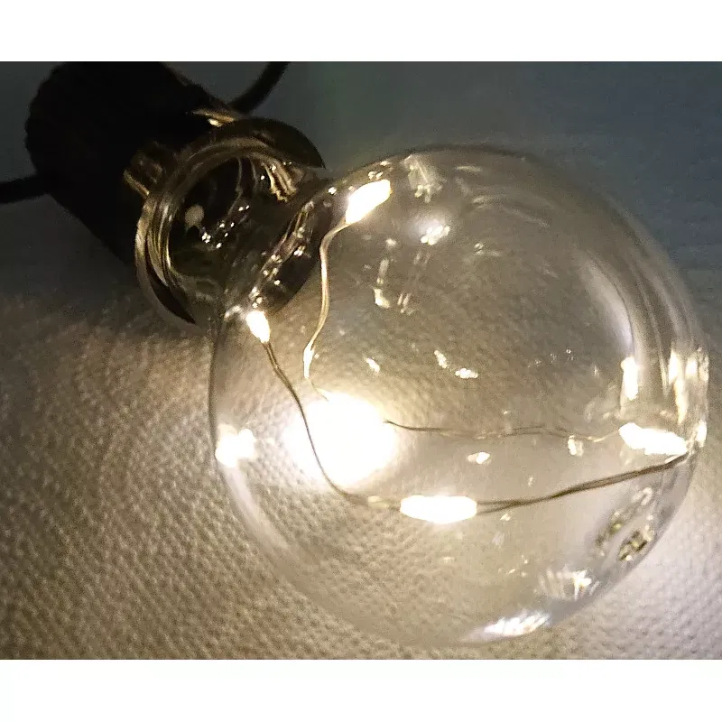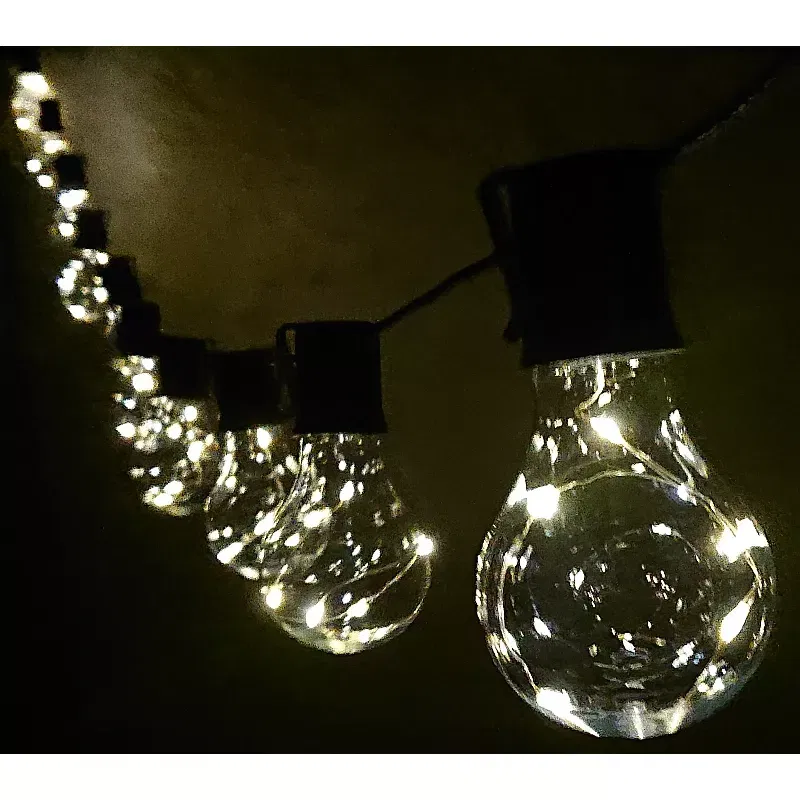 Łańcuch świetlny 15 żarówek o średnicy 5 cm zapewni nastrojowe oświetlenie. Girlanda jest dosyć gęsta lampki co 20 cm, każda lampka posiada haczyk do zawieszenia. Dzięki zasilaniu solarnemu nie zapłacisz nic za prąd, a dzięki czujnikowi zmierzchu lampki się automatycznie włączały po zmierzchu. Długi przewód zasilający od sterownika do pierwszej lampki ma 2 metry co pozwala na umieszczenie lampek w sporej odległości od solara, co jest przydatne w wypadku montażu pod dachem np. na patio. Długość całkowita to około 4.8 metrów. SPECYFIKACJA :
