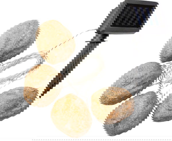 Girlanda solarna LED w formie 4 kamieni to wyjątkowa dekoracja do ogrodu, tarasu czy balkonu. Ładuje się energią słoneczną w ciągu dnia, a po zmroku automatycznie rozświetla przestrzeń ciepłym, nastrojowym światłem, tworząc przytulny i magiczny klimat.
