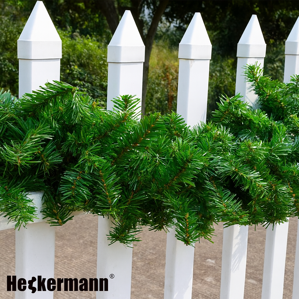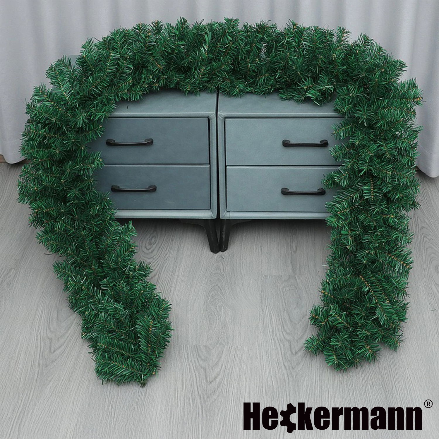 Poznaj girlandę świąteczną Heckermann o długości 270 cm – klasyczną, gęstą i niezwykle realistyczną dekorację, która doskonale imituje naturalne gałązki świerku.
