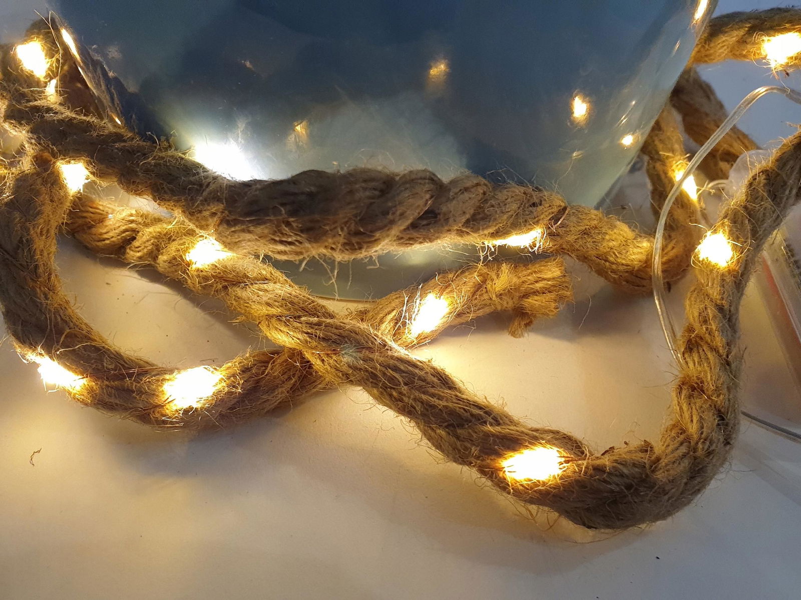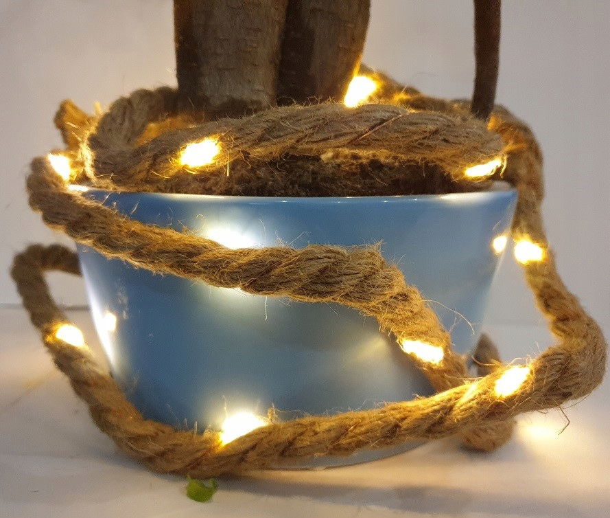 Super cieniutkie lampki Led owinięte na sznurze jutowym będą świetnie komponowały się podświetlając ozdoby w Twoim domu.