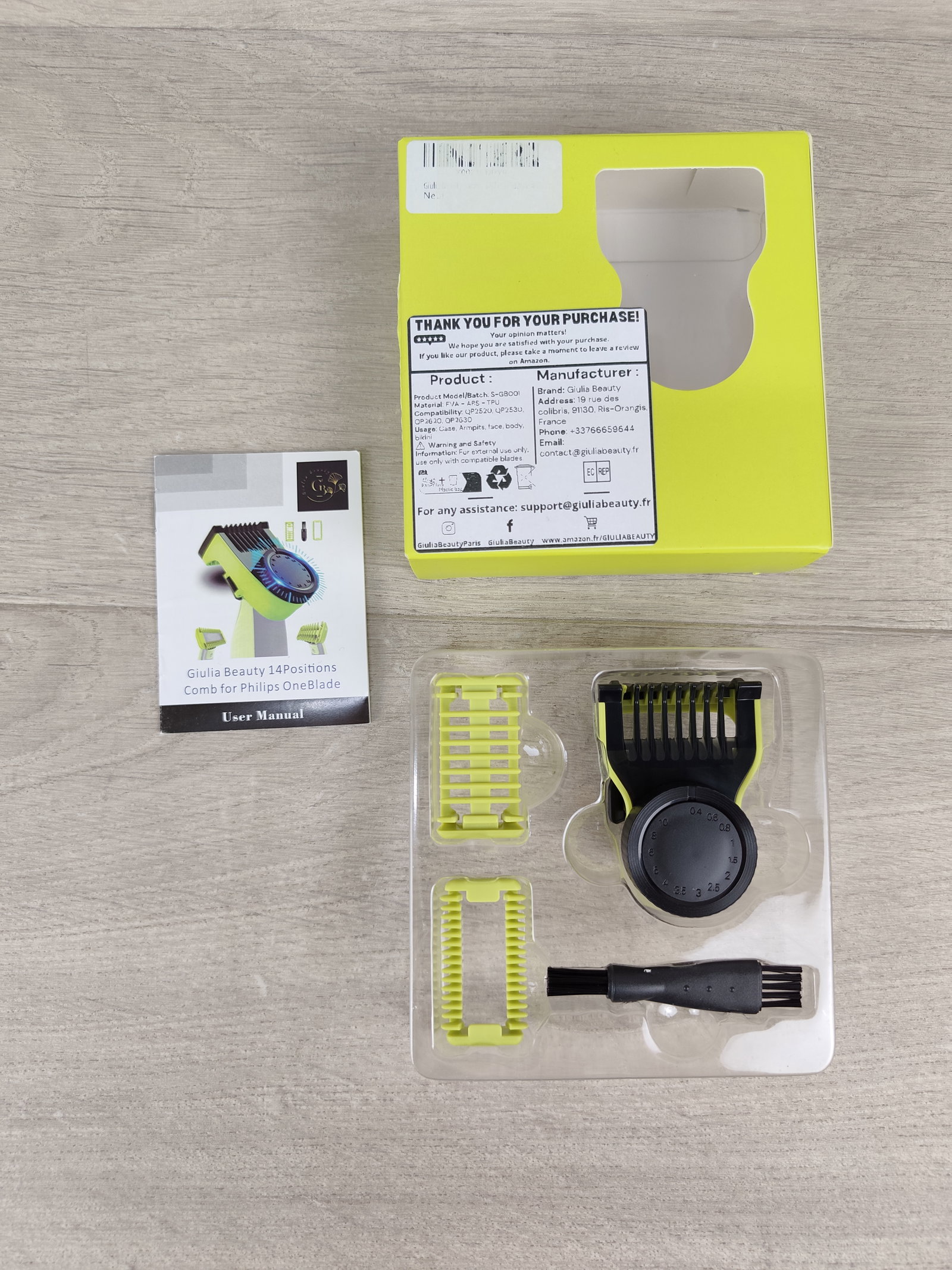 W zestawie znajduje się (grzebień do ciała, ochraniacz skóry oraz szczoteczka do czyszczenia. Konstrukcja z trwałego PC + TPU zapewnia stabilność, bezpieczeństwo i wygodę użytkowania.