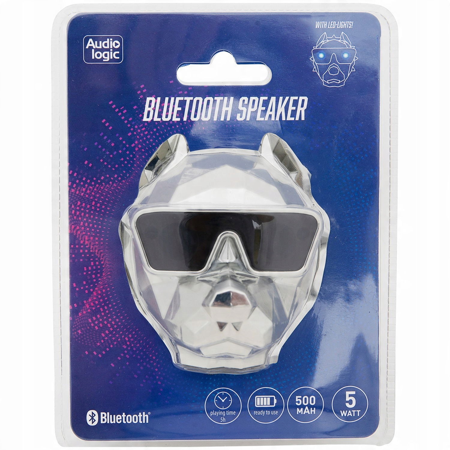 Efektowny głośnik w kształcie głowy psa da Ci możliwość słuchania swojej ulubionej muzyki w każdym miejscu. Wbudowany w tym modelu akumulator pozwoli Ci na 5 godzin pracy na pełnym naładowaniu, a pełny cykl ładowania to tylko 2.5 godziny, więc głośnik bardzo szybko będzie znów gotowy do pracy. Głośnik został wyposażony także w dwie diody LED, podświetlające oczy psa podczas pracy.