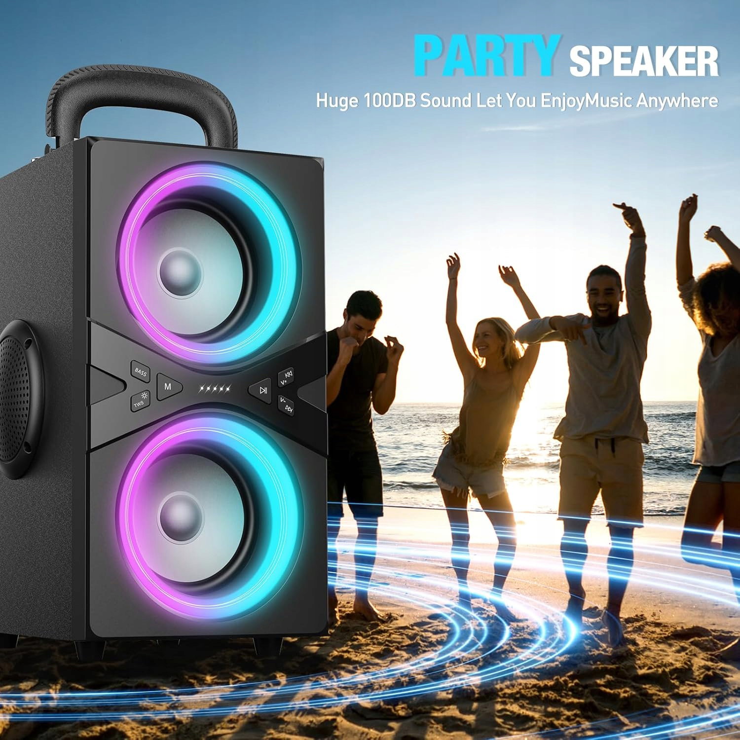 Głośnik Bluetooth TPBEAT Stereo 80W z LED i BassUp – Przenośny, Głośny, Wysoka Jakość Dźwięku, Idealny na Imprezy, Kemping, Plażę