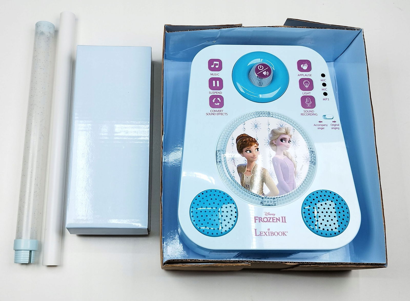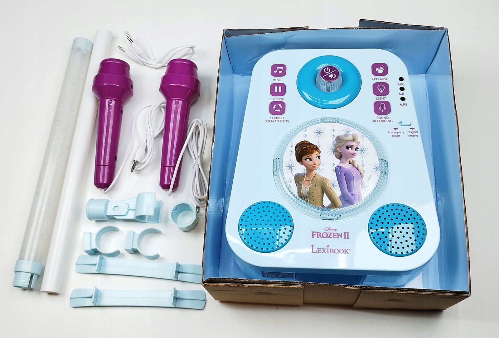 Głośnik Karaoke Frozen Z Dwoma Mikrofonami I Efektami Świetlnymi I Dźwiękow
