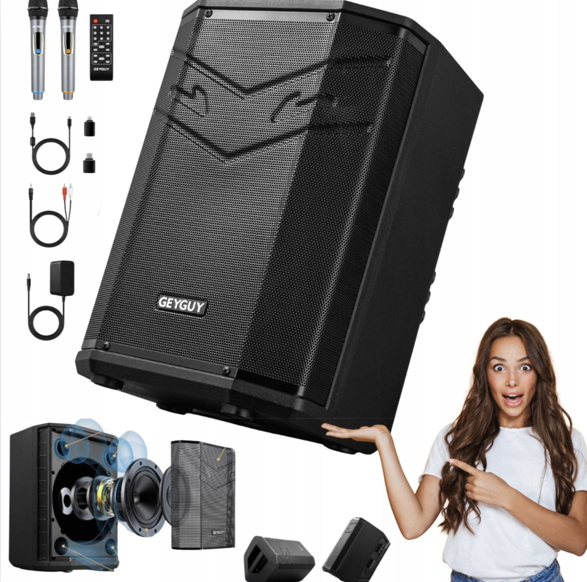 Przenośny system GPSK-4 Pro PA marki GEYGUY to wszechstronne rozwiązanie all-in-one dla piosenkarzy, mówców i małych wykonawców.