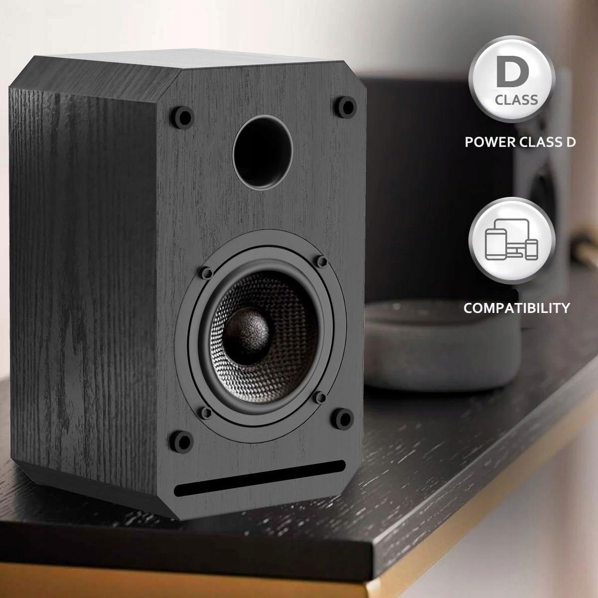 Głośnik booshelf 2.0: Wbudowany wzmacniacz klasy D o wyraźnej mocy 15 Wx2, łączy w sobie 7.6 cm przetwornik pełnozakresowy, czysty dialog i pełny, żywy dźwięk