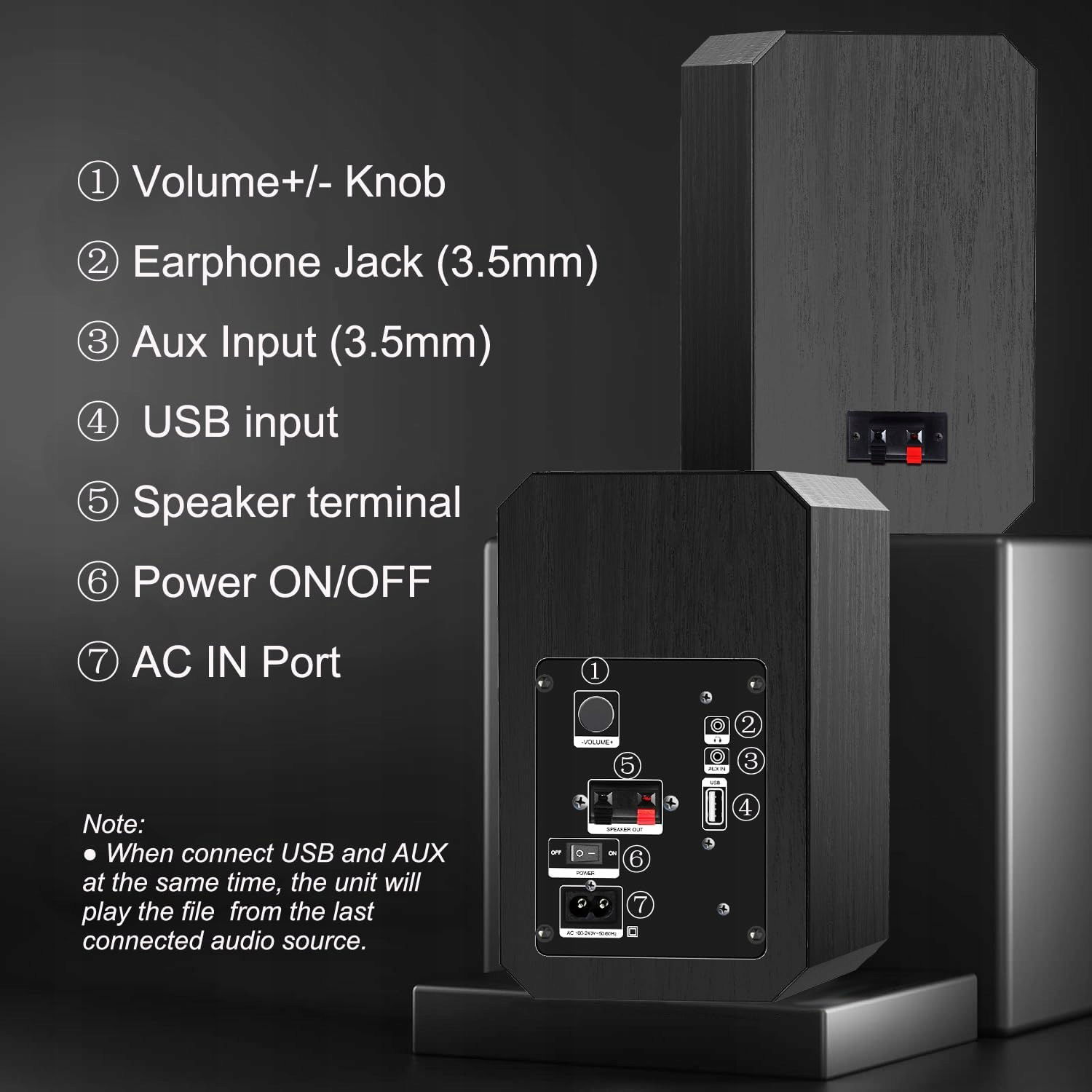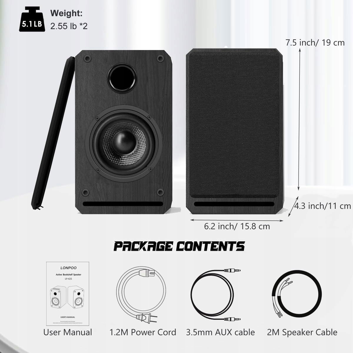 LONPOO LP-42s aktywne głośniki półkowe z łącznością Bluetooth, USB, wejście AUX, wyjście słuchawkowe