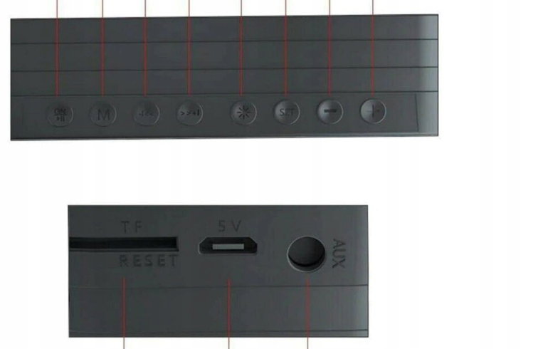 - ✴️Urządzenie umożliwia bezprzewodowe odtwarzanie muzyki ze smartfona, tabletu lub laptopa przez Bluetooth. Można również słuchać muzyki z karty pamięci TF (micro-SD) albo przez wejście audio. Wbudowany wyświetlacz LED pokazuje aktualną godzinę i może pełnić funkcję budzika z możliwością ustawienia alarmu.