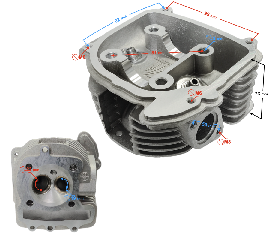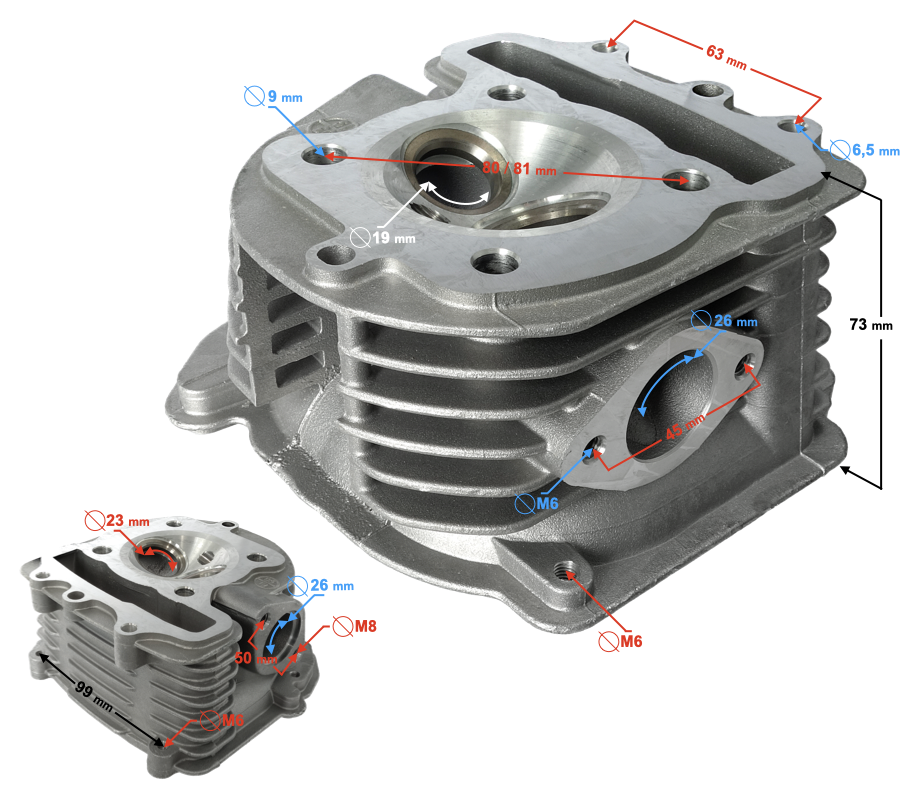 - rozstaw szpilek kolektora wydechowego: 50 mm