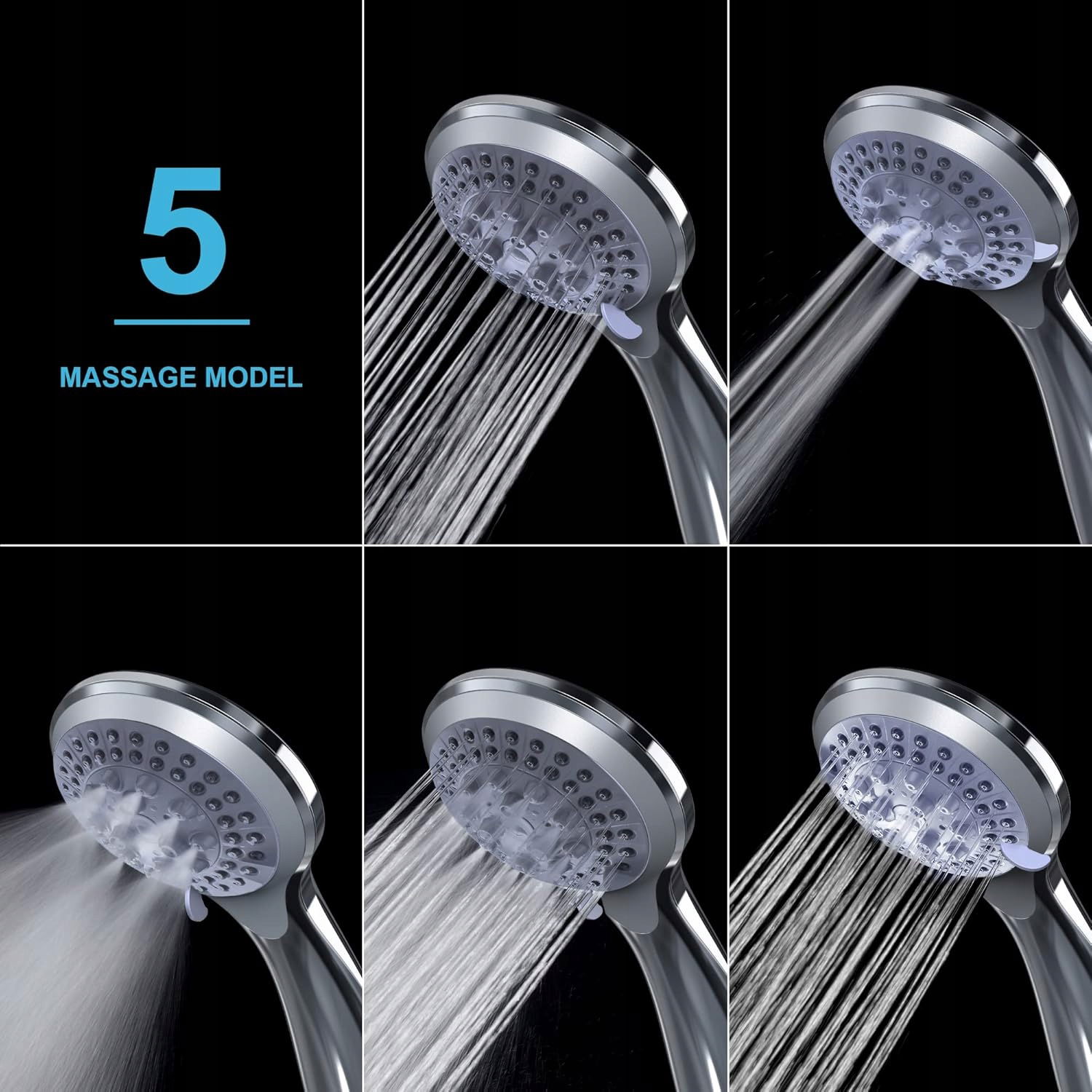 Prosta w czyszczeniu i szczelna budowa ułatwia obsługę. Pięć ustawień strumienia zapewnia idealne dopasowanie do każdej potrzeby, od łagodnej mgiełki po mocny masaż.