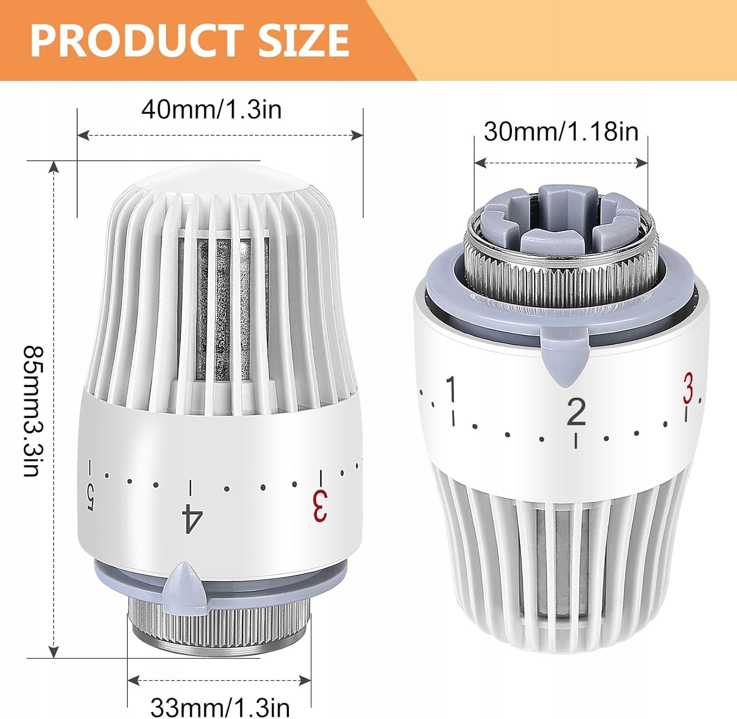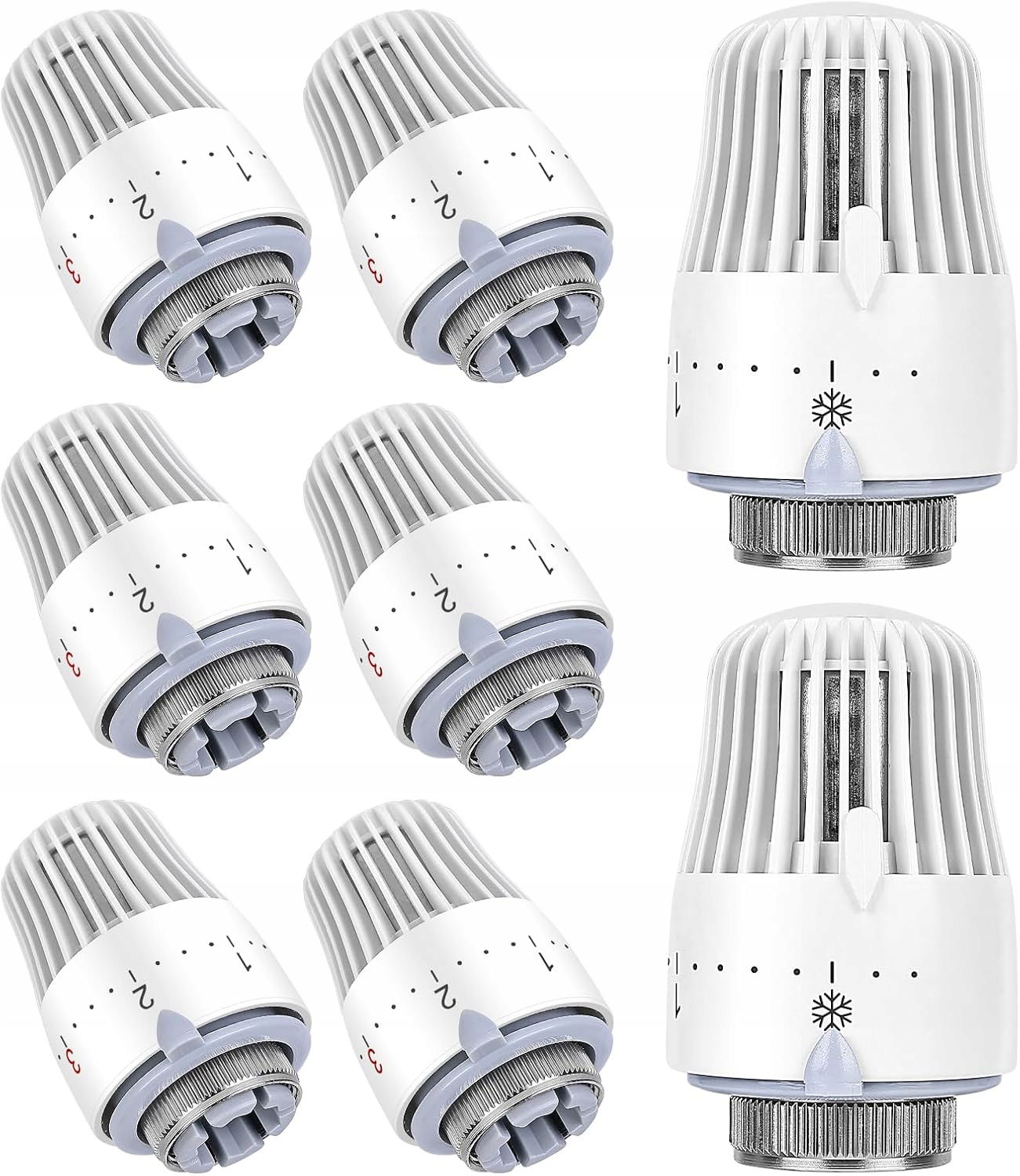 Vegena Termostat grzejnikowy, głowica termostatu, regulator ogrzewania: 8 sztuk, zawór grzejnikowy M30 x 1,5, głowica termostatu, zawór termostatyczny, głowica zamienna do grzejnika, do biura domu