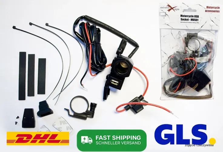 Motocyklowe gniazdo zapalniczki z wbudowanym portem USB, przeznaczone do montażu na kierownicy lub rurce. Umożliwia ładowanie urządzeń elektronicznych w podróży, zapewniając jednocześnie ochronę dzięki zintegrowanemu bezpiecznikowi. Jest to praktyczne rozwiązanie do zasilania nawigacji, smartfonów czy innych akcesoriów.