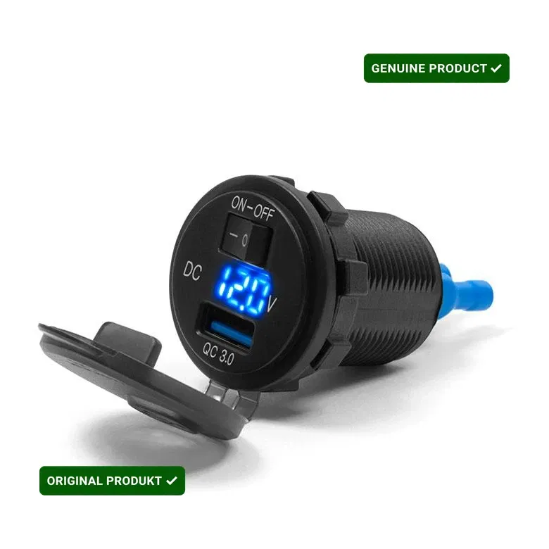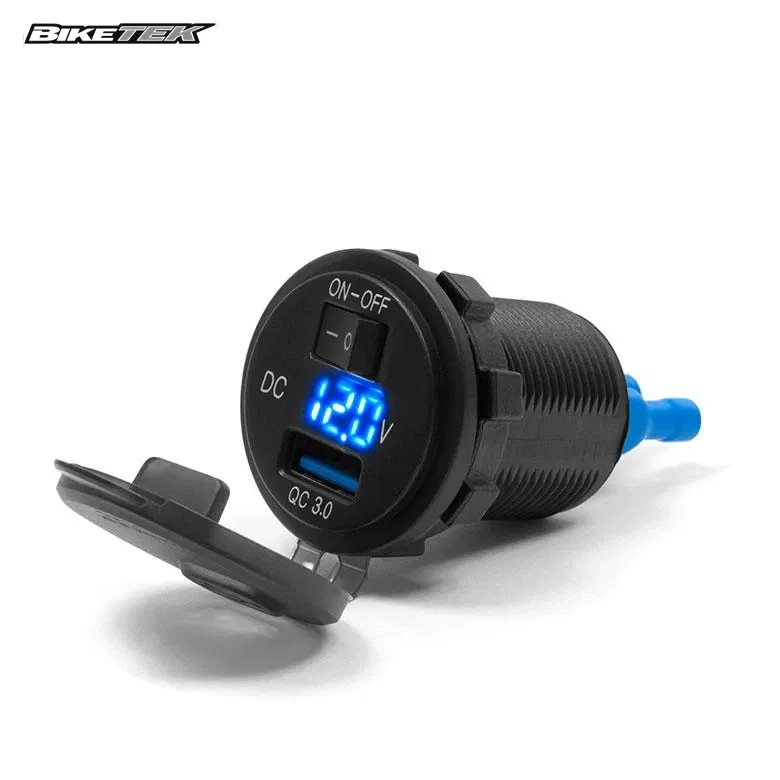 Motocyklowe gniazdo USB Quick Charge BIKETEC BTMUS13 to zaawansowane rozwiązanie do ładowania urządzeń mobilnych w podróży. Wyposażone jest w szybkie ładowanie, zintegrowany woltomierz do monitorowania napięcia akumulatora oraz wygodny wyłącznik. Produkt przeznaczony jest do montażu na płaskich powierzchniach, takich jak owiewki czy kufry, lub na kierownicy z użyciem dedykowanego adaptera.