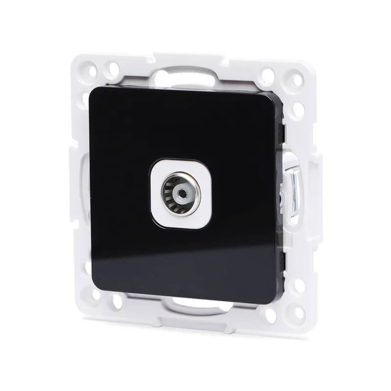 Gniazdo antenowe TV zakończeniowe w kolorze białym, gniazdo końcowe służy do zakończenia instalacji przelotowej, tzn. od anteny lub innych gniazd przelotowych biegnie jeden kabel do pomieszczenia.