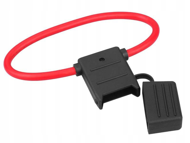 Oprawka na bezpiecznik samochodowy, stosowana do zabezpieczenia instalacji samochodowej, np. wzmacniacza lub radia. Gniazdo pasuje do standardowych bezpieczników płytkowych, nożowych MAXI używanych w samochodach.