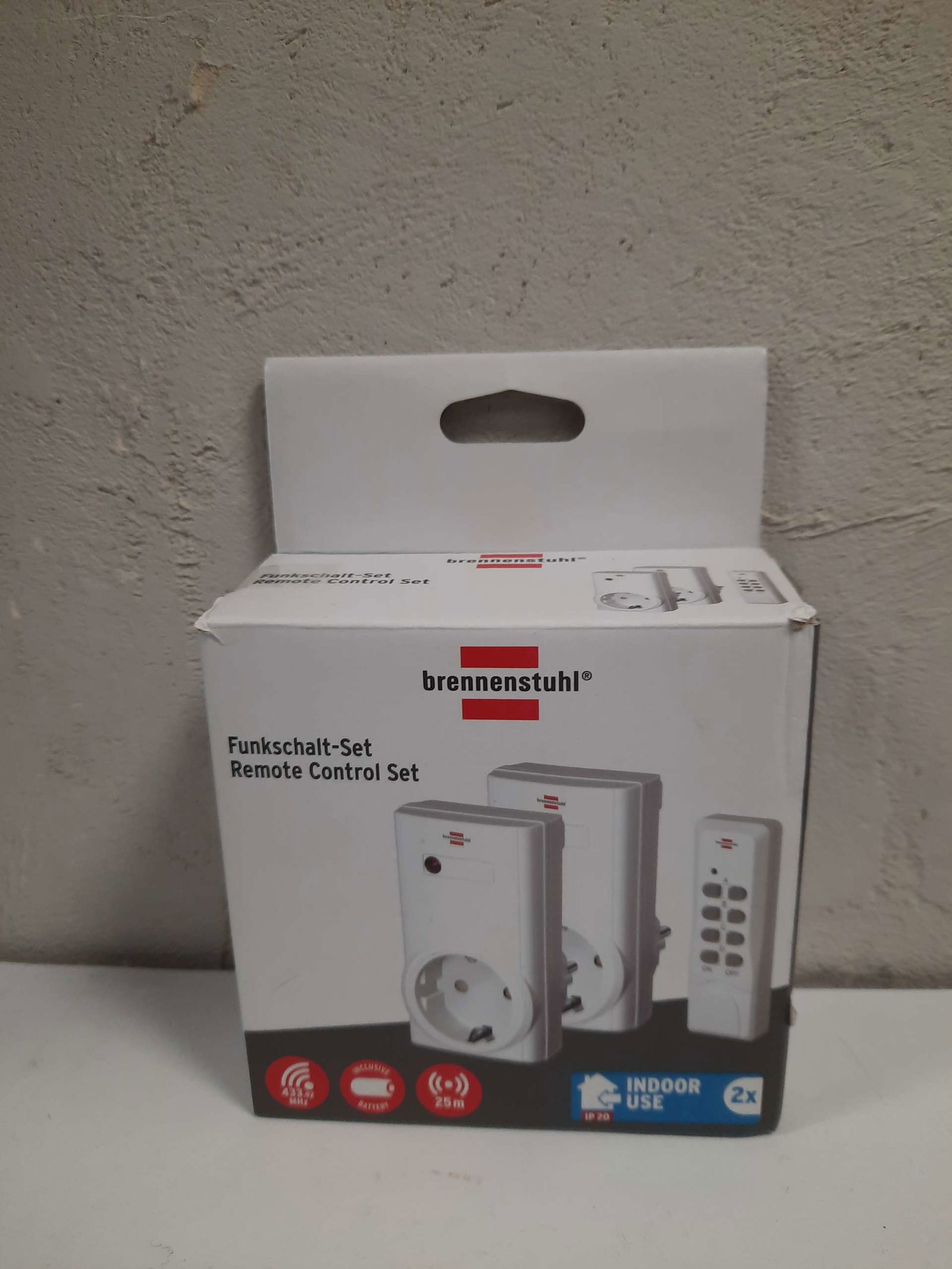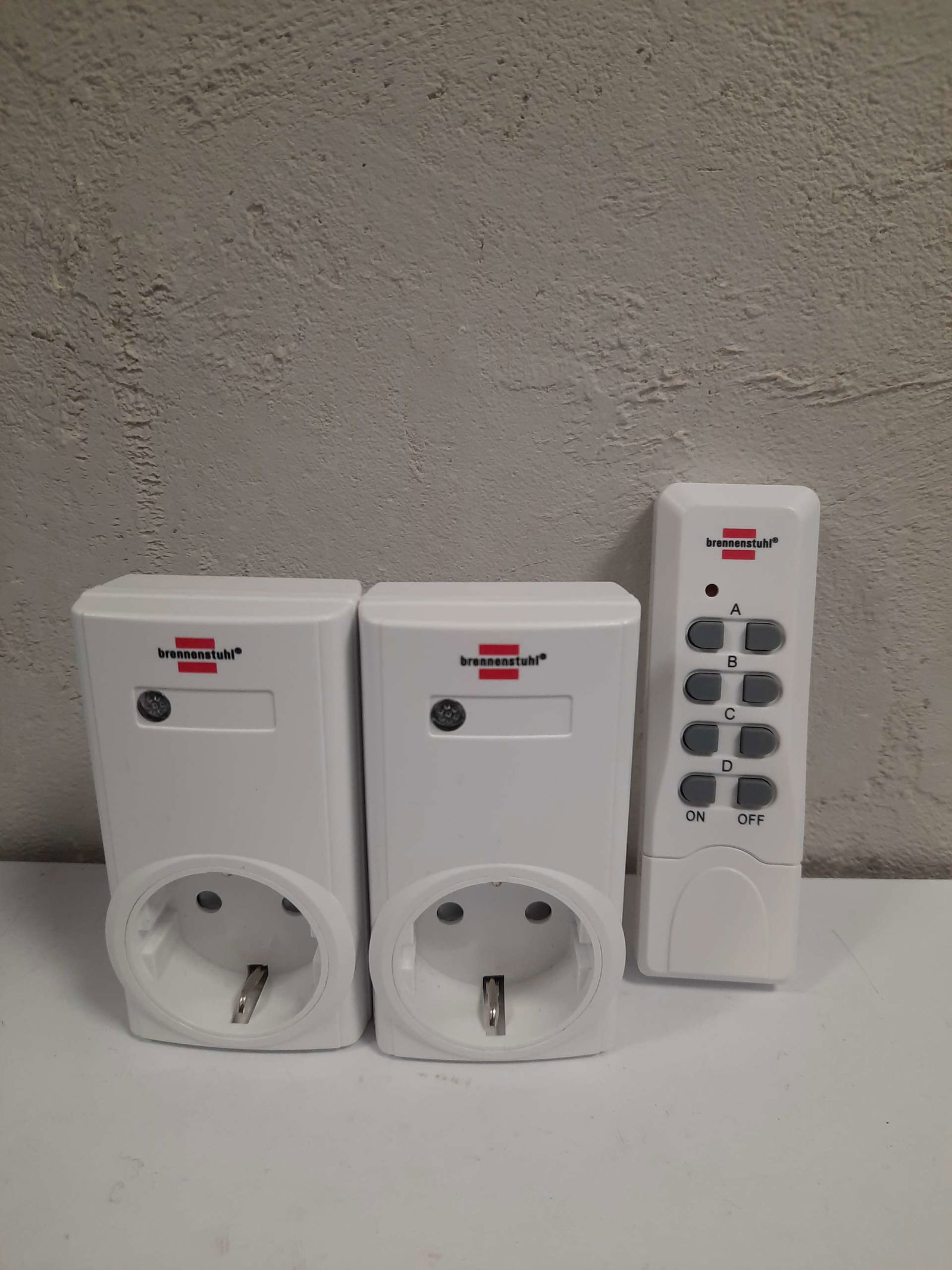 Zestaw przełączników radiowych firmy Brennenstuhl z dwoma odbiornikami radiowymi i białym nadajnikiem ręcznym przekonuje jakością i bezpieczeństwem we wszystkich obszarach.