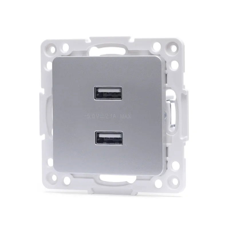 Gniazdo USB podwójne 2 porty USB 2.1A/5V podtynkowe srebrne bez ramki