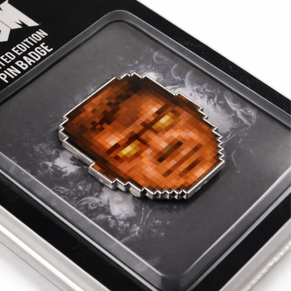 Wskocz z powrotem w krwawe korytarze piekła i odpal nieśmiertelność—God Mode to mały, ale konkretny kawałek DOOM-owego klimatu, idealny dla fanów, którzy żyją tym klasycznym “rip and tear”. Ten metalowy pin o rozmiarze 5 cm nawiązuje do kultowej, pikselowej twarzy z HUD-a: kanciaste cieniowanie w miedziano-pomarańczowych i brązowych tonach, ostre żółte oczy i delikatne różowe akcenty. Całość wygląda na błyszczącą i “grową”, jak zatrzymana klatka z pecetowej jatki lat 90., którą możesz nosić na co dzień. Jasna, srebrzysta obwódka podkreśla schodkowy, 8-bitowy kontur, dodając wyrazistego reliefu i efektu “prosto z ekranu”. Świetnie siada na kurtce, plecaku, ita bagu, smyczy albo na tablicy kolekcjonerskiej. Blister ma logo DOOM i napis “Limited Edition Pin Badge”, a do tego czytelne oznaczenia licencji Bethesda i ZeniMax oraz informację “manufactured under license by FANATIK”, więc wygląda jak porządne, gotowe do ekspozycji wydanie. Na opakowaniu jest też wzmianka, że pin jest numerowany na rewersie i limitowany do 9995—idealny, żeby wskoczył do Twojego zestawu albo zrobił robotę jako ozdoba kolekcji.