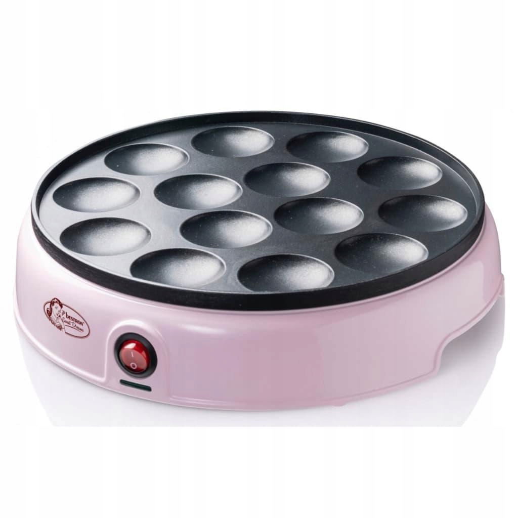 Bestron APFM700SDP to kompaktowe urządzenie do holenderskich mini naleśników poffertjes. Rozgrzewa się szybko, a nieprzywierająca płyta z 14 gniazdami pozwala upiec równą partię w kilka minut. Masz wyłącznik z lampką, stabilne nóżki i obudowę odporną na ciepło, więc obsługa jest prosta i bezpieczna. W zestawie masz urządzenie z przewodem i instrukcję — wyjmujesz z pudełka i działasz.