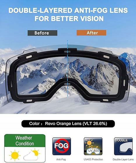 Podwójna soczewka z niezaparowującą powłoką Antifog oraz dwukierunkowy system wentylacji skutecznie redukują parowanie gogli, zapewniając czystą widoczność nawet w trudnych warunkach pogodowych.