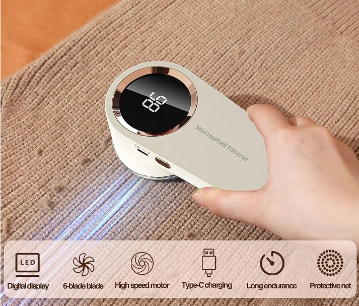 Nowoczesna i elegancka golarka do ubrań Mini Hairball Trimmer to niezastąpione urządzenie, które pozwoli w szybki i wygodny sposób zadbać o nienaganny wygląd Twojej garderoby oraz domowych tekstyliów. Dzięki niej z łatwością usuniesz nieestetyczne kulki, mechacenia i zagniecenia, które pojawiają się na odzieży podczas codziennego użytkowania. Golarka świetnie sprawdza się nie tylko na ubraniach – nadaje się również do tapicerki meblowej, pledów, koców czy zasłon. Wbudowany cyfrowy wyświetlacz LED informuje o stanie baterii, co daje Ci pełną kontrolę nad pracą urządzenia i pozwala uniknąć niespodziewanego rozładowania w trakcie użytkowania.